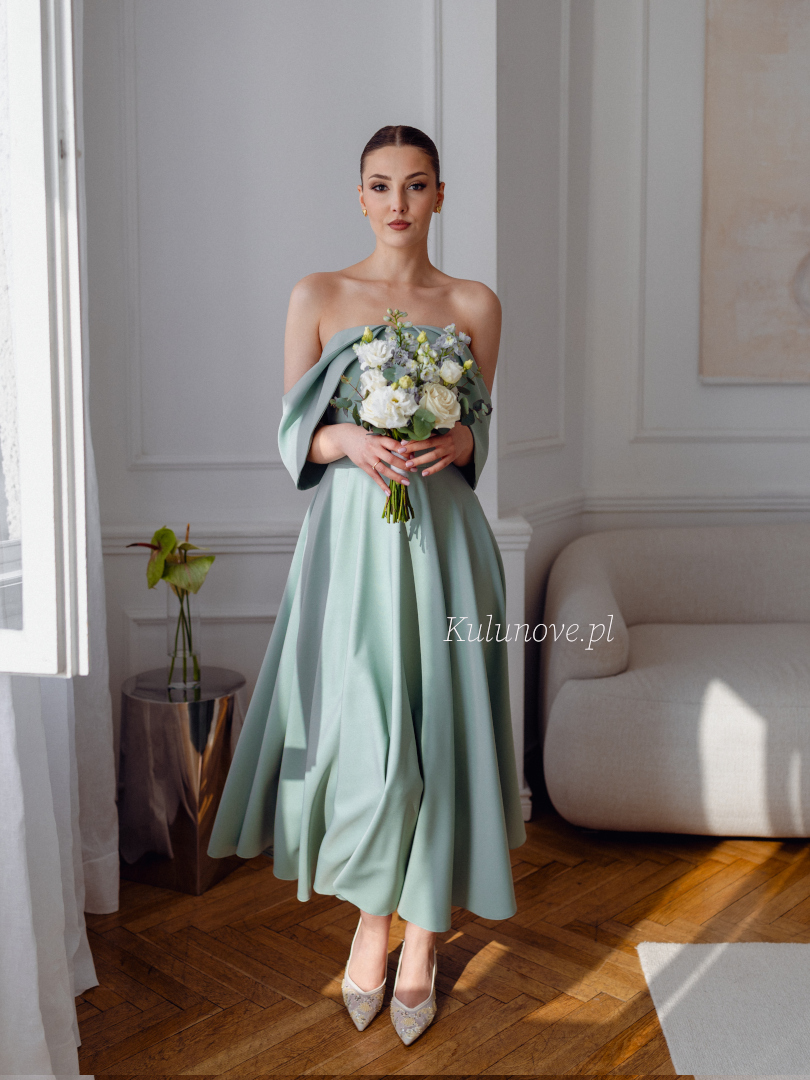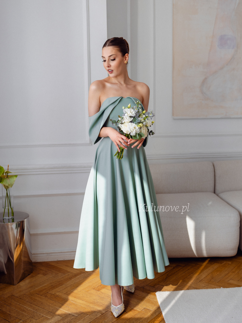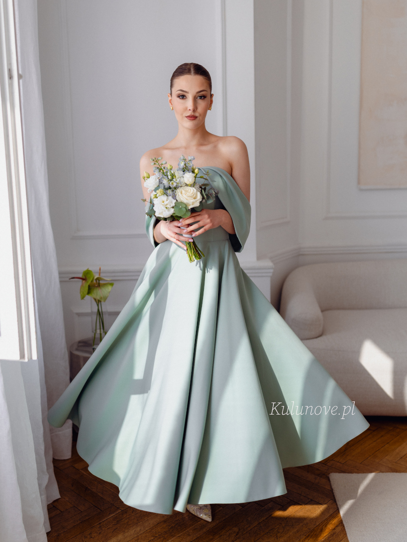 The delicate, muted shade of green beautifully highlights natural beauty and is perfect for outdoor celebrations, summer parties or family celebrations.