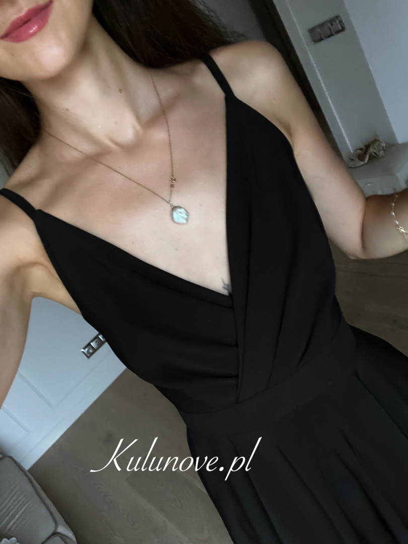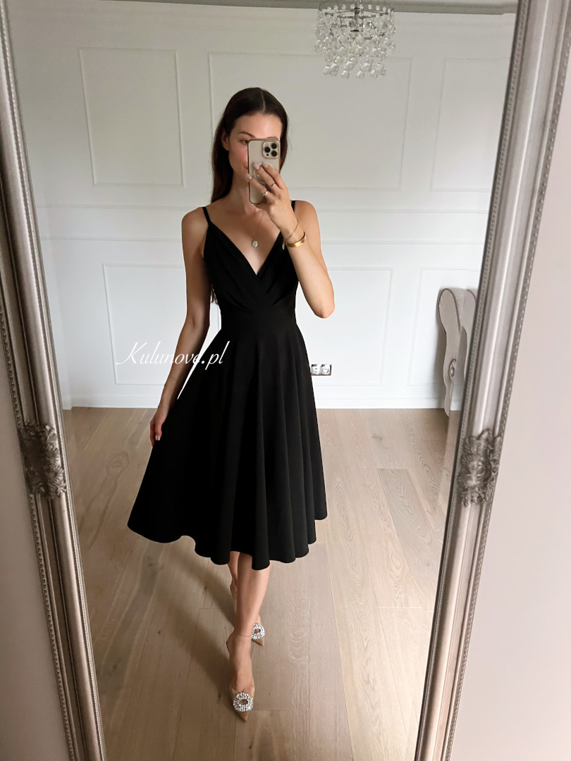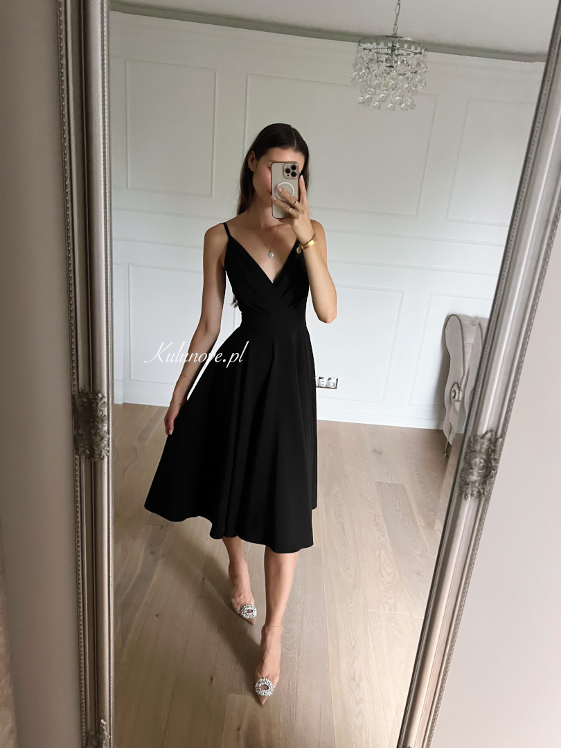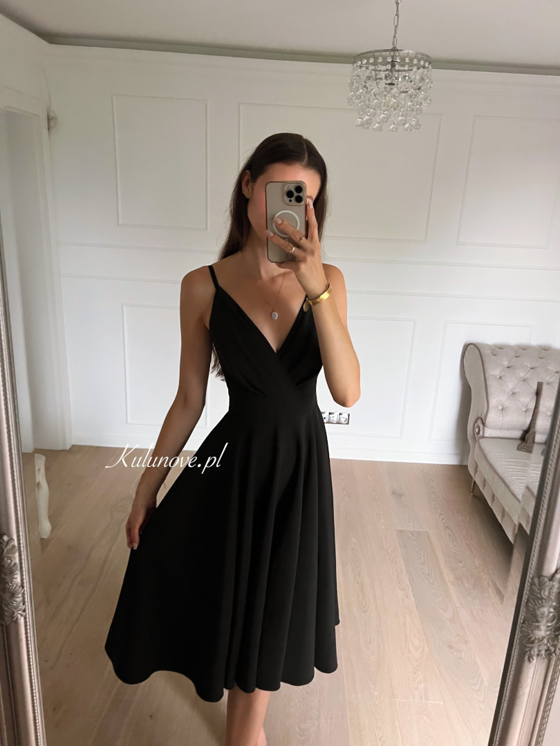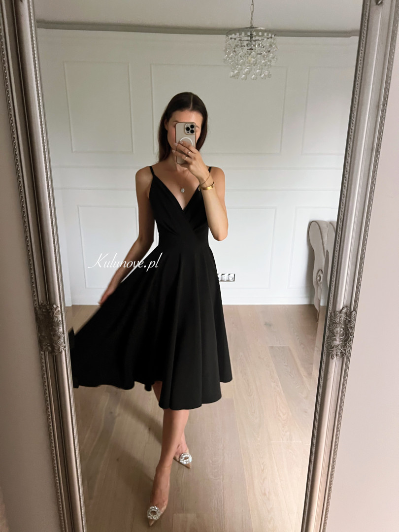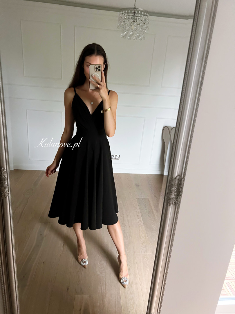 Elisabeth midi - black elegant strapless midi dress with envelope neckline