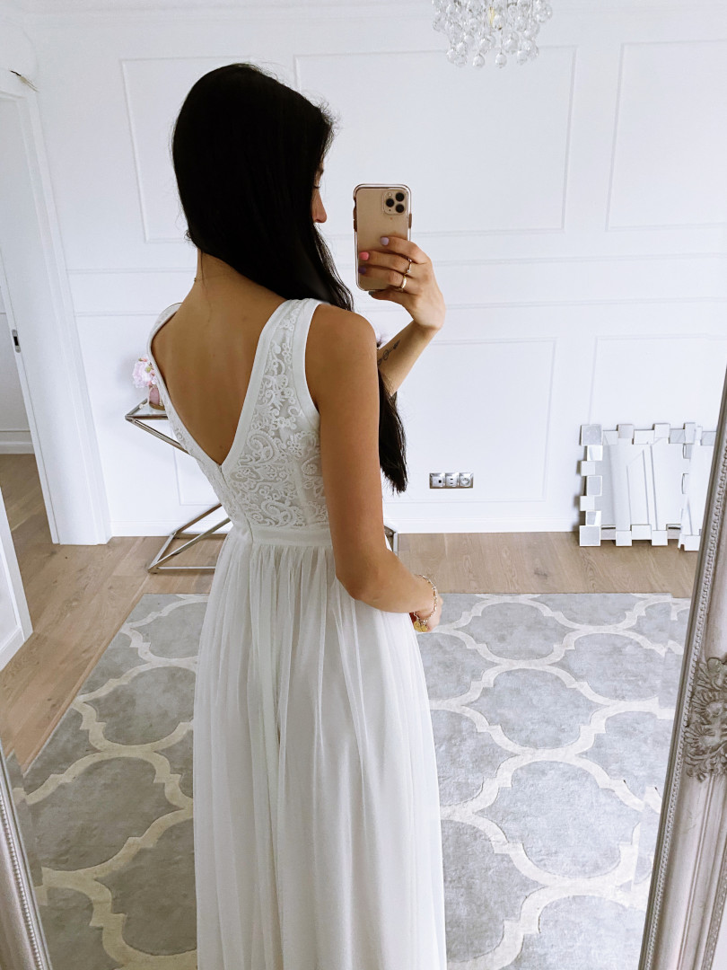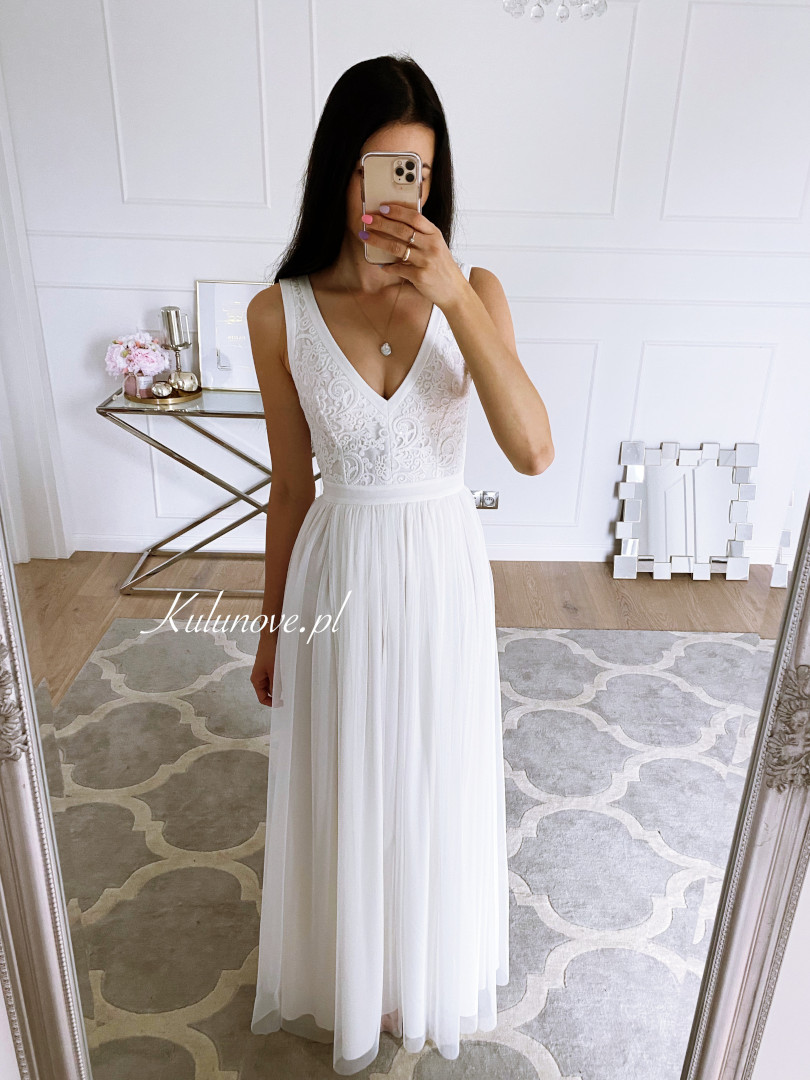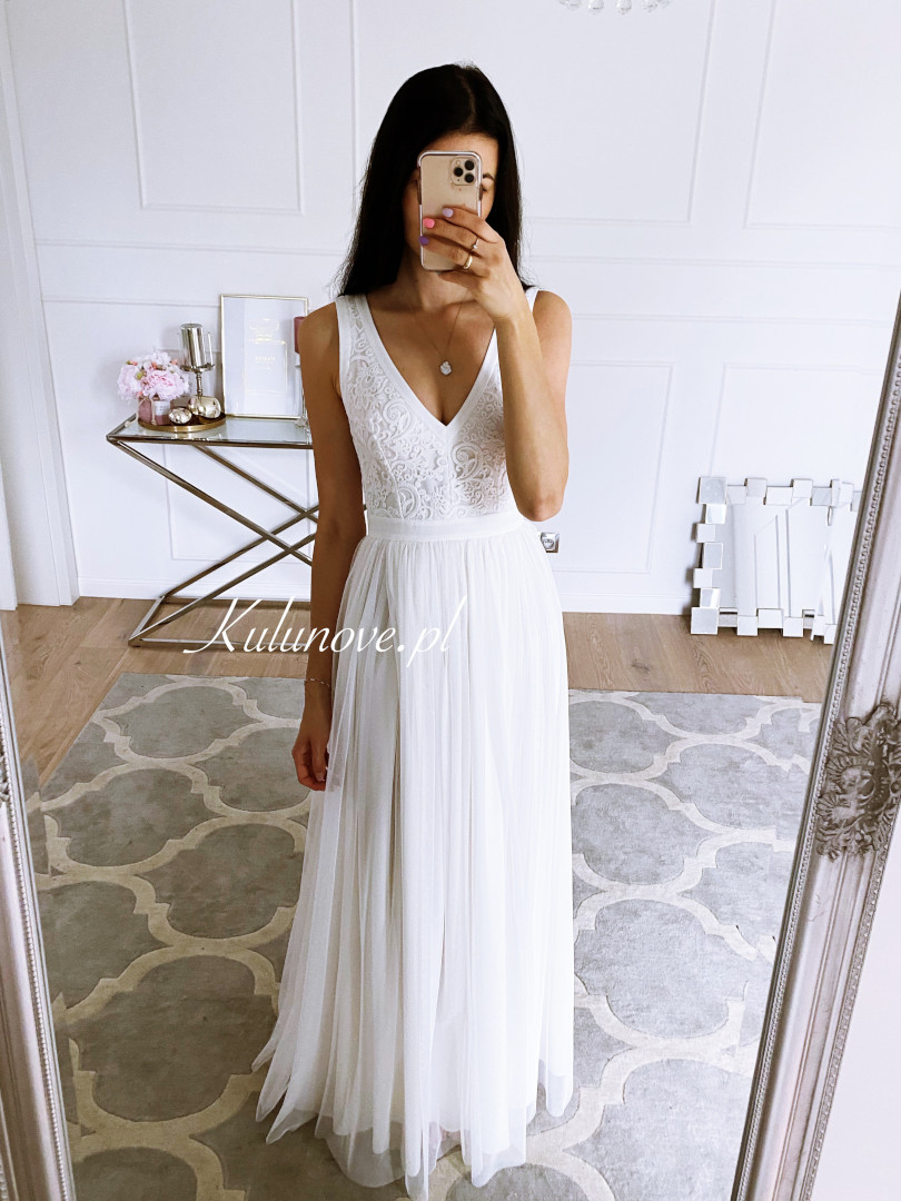 Please take special care when fastening the dress. We suggest making sure the tulle is evenly aligned and not too close to the zipper before fastening. Attention to this detail will help avoid accidental damage and prolong the life of the product.