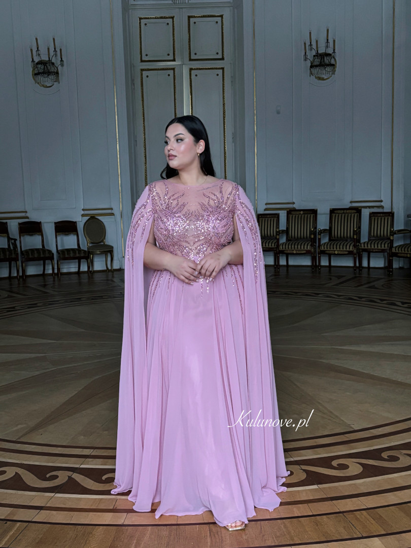 Amara - embellished maxi dress in pink with long chiffon sleeves
