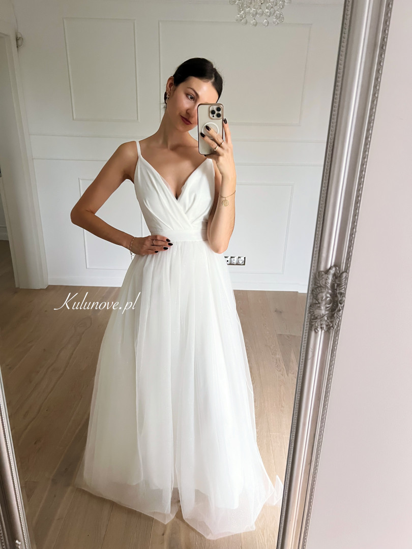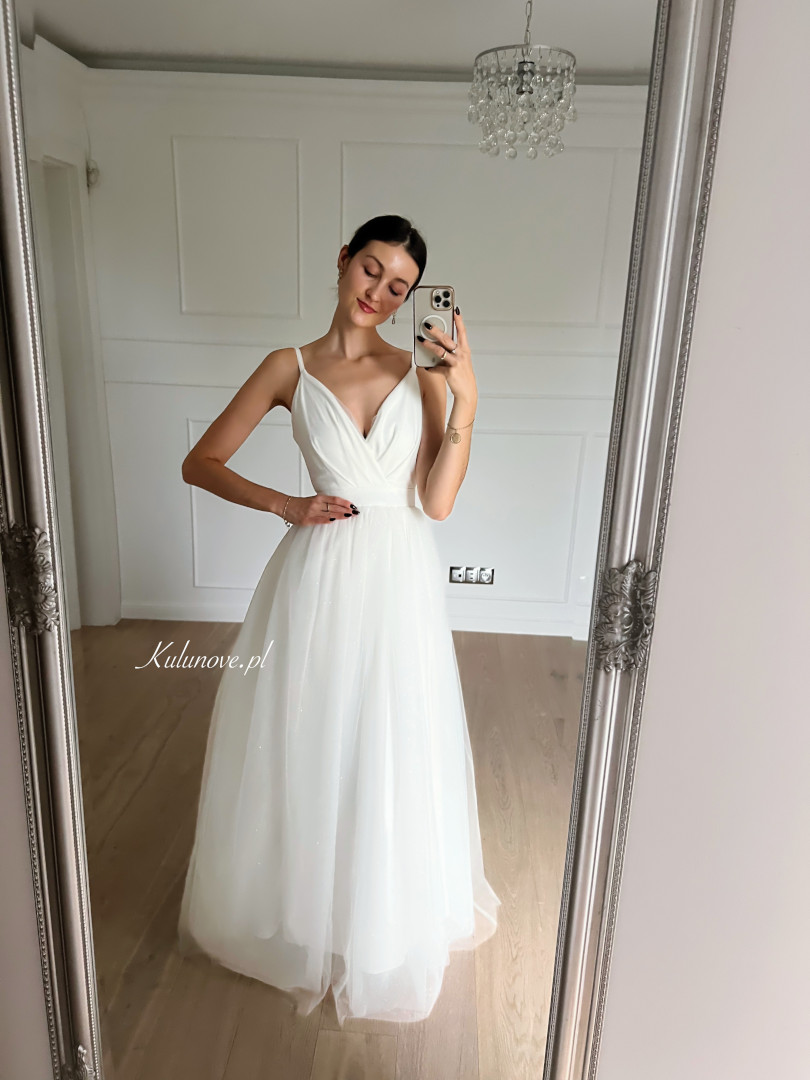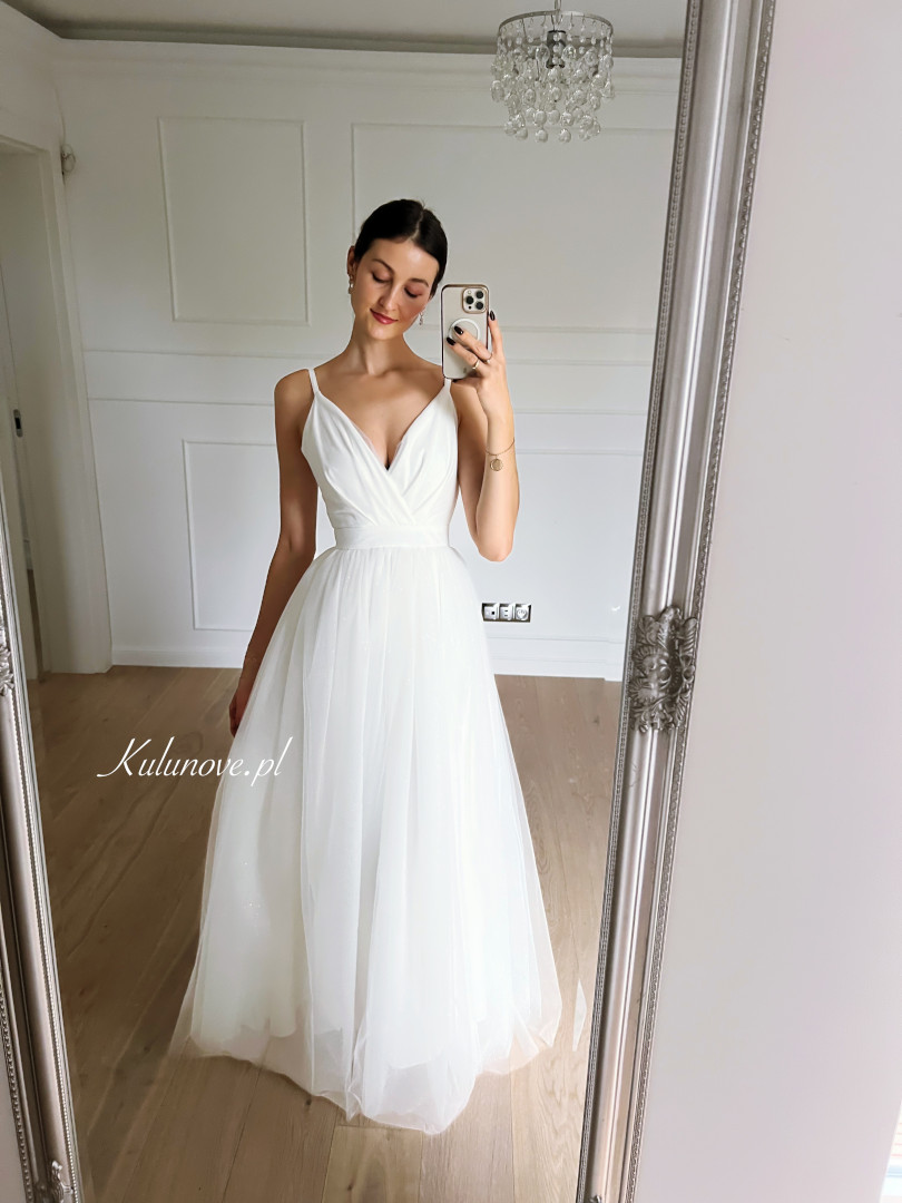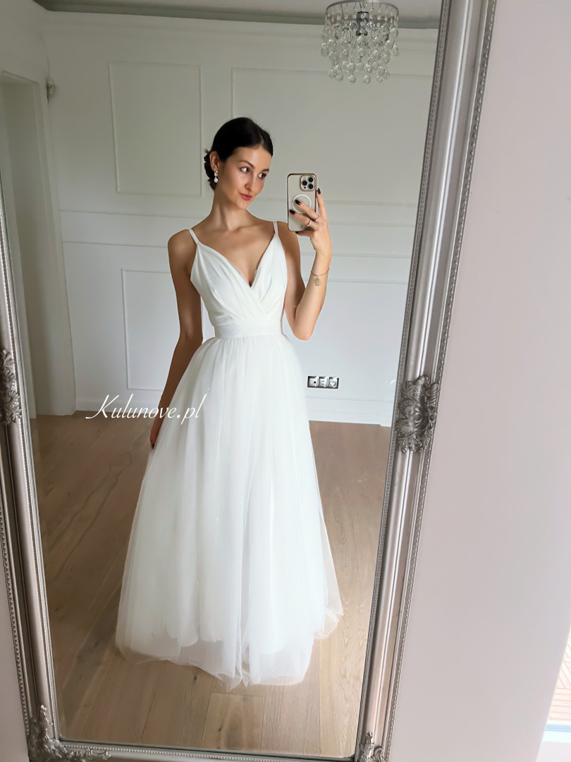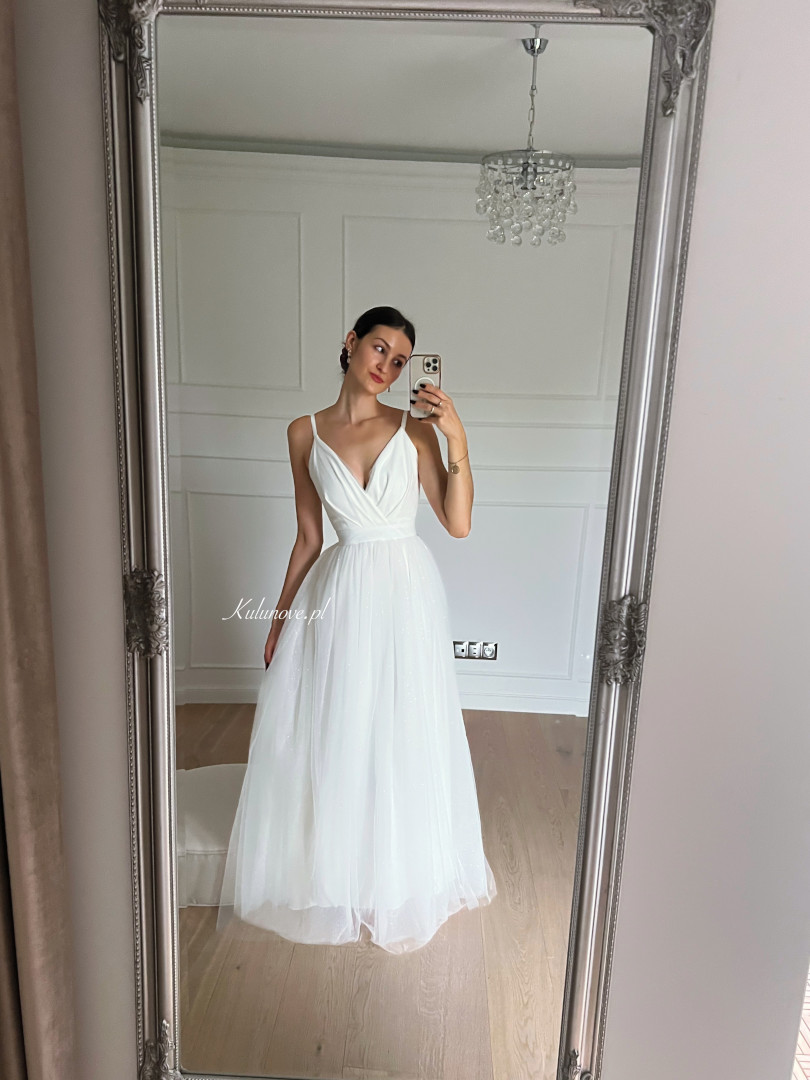 Please take special care when fastening the dress. We suggest making sure the tulle is evenly aligned and not too close to the zipper before fastening. Attention to this detail will help avoid accidental damage and prolong the life of the product.