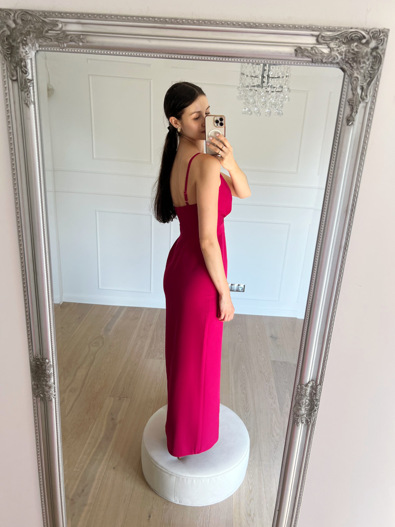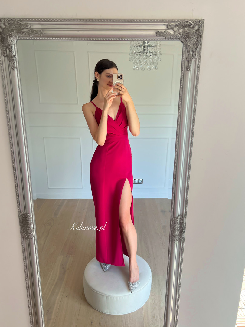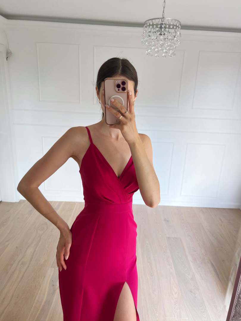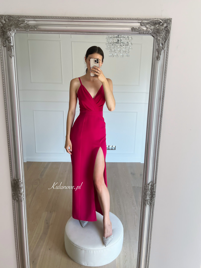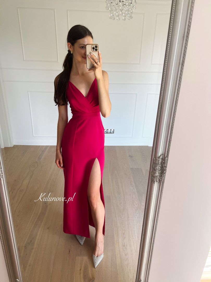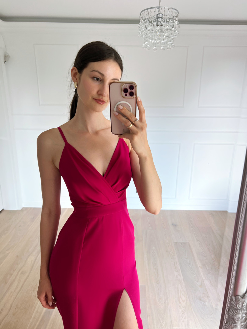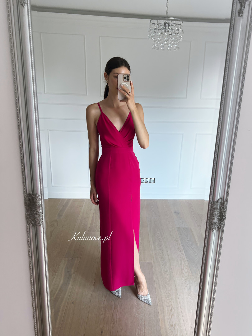 Andrea - elegant simple dress with overlap neckline in fuchsia color