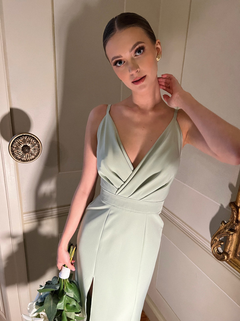 Dress with envelope neckline perfect for a wedding.