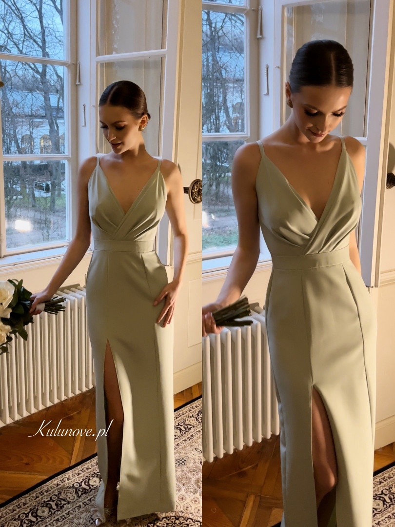 Andrea - sage simple long strapless dress