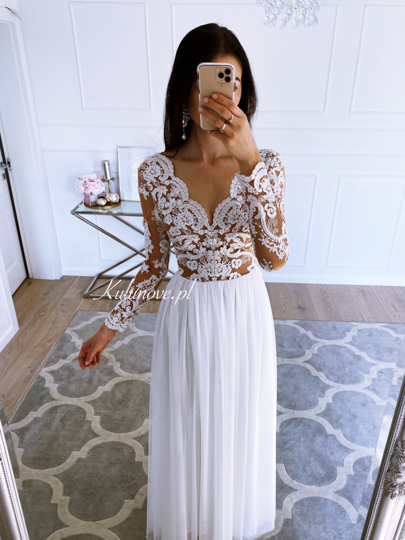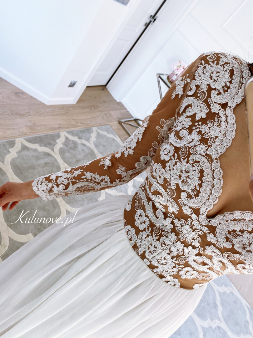 The bottom of the dress is made of double, airy tulle.