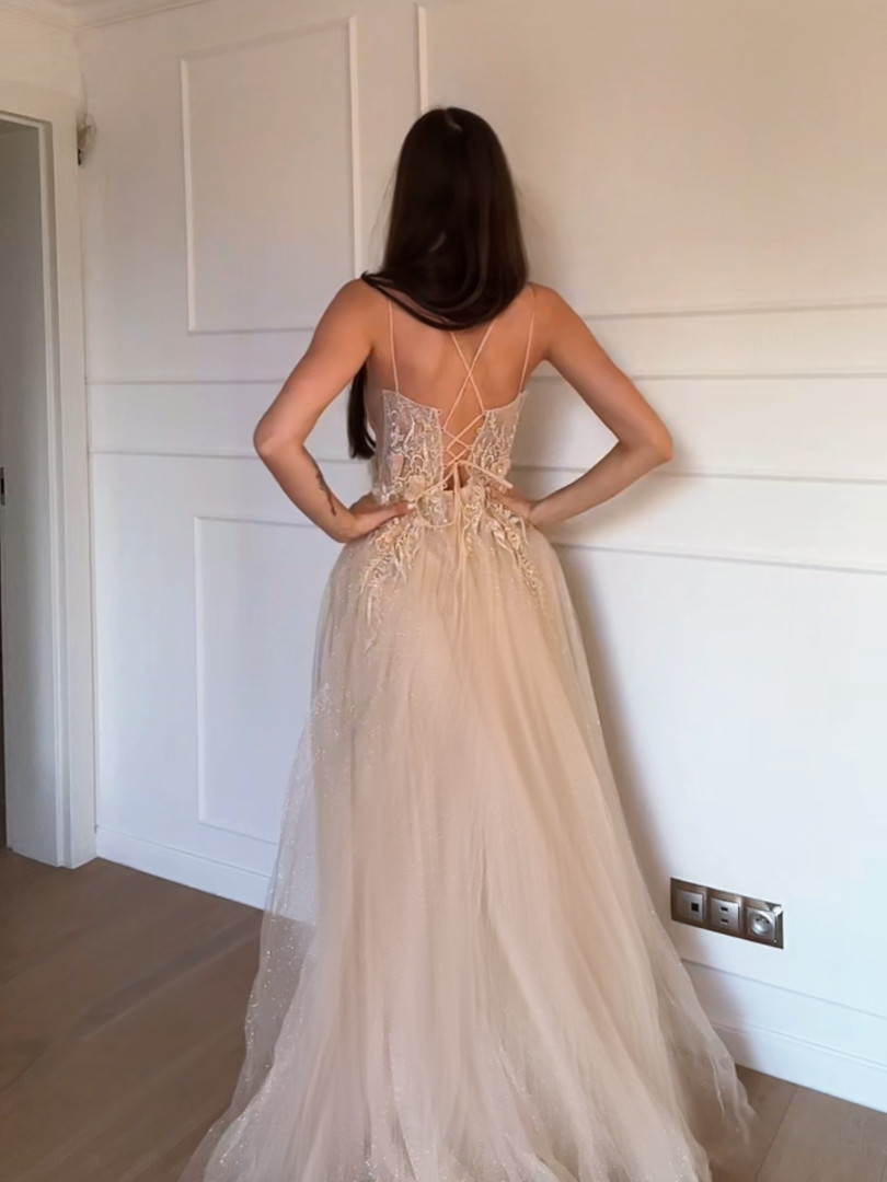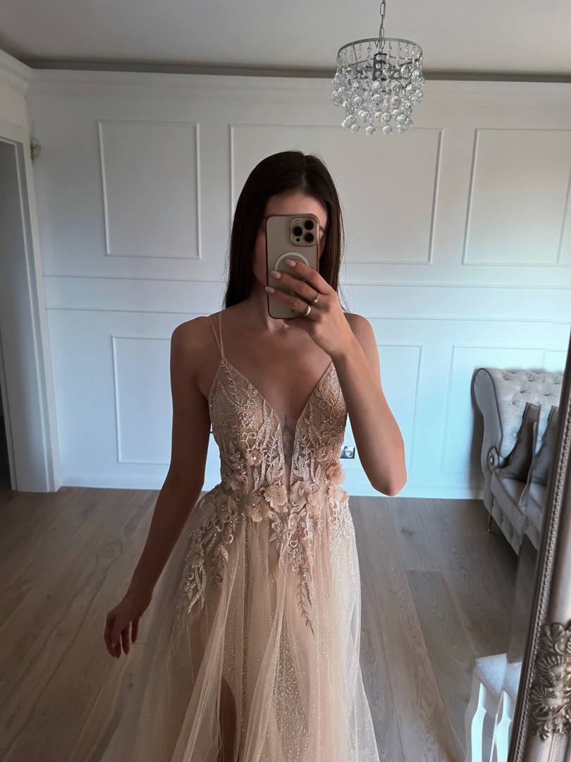 Please take special care when zipping up tulle dresses. We suggest making sure the tulle is evenly aligned and not too close to the zipper before fastening. Attention to this detail will help avoid accidental damage and prolong the life of the dress.