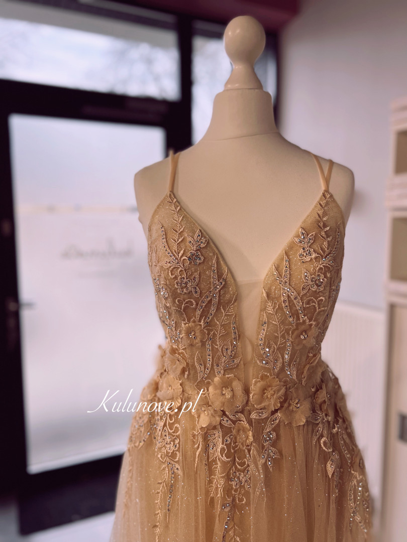 The lace on the bodice was decorated with holographic diamonds - it goes down gently below the waist.