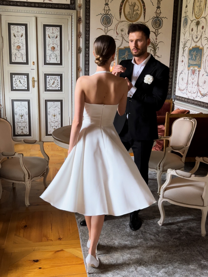 Length: Measure the length from the shoulder, or from where you want the top line of the dress to be, to where the creation should end.