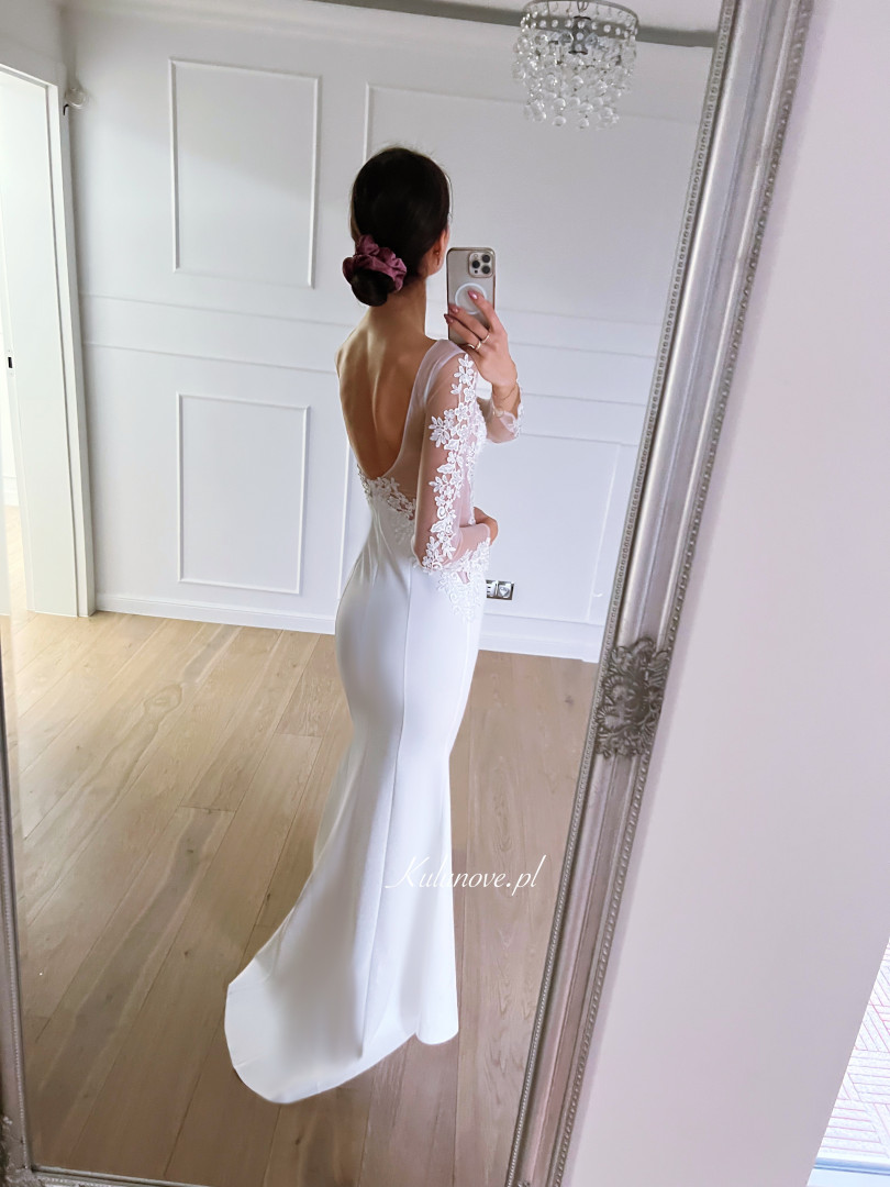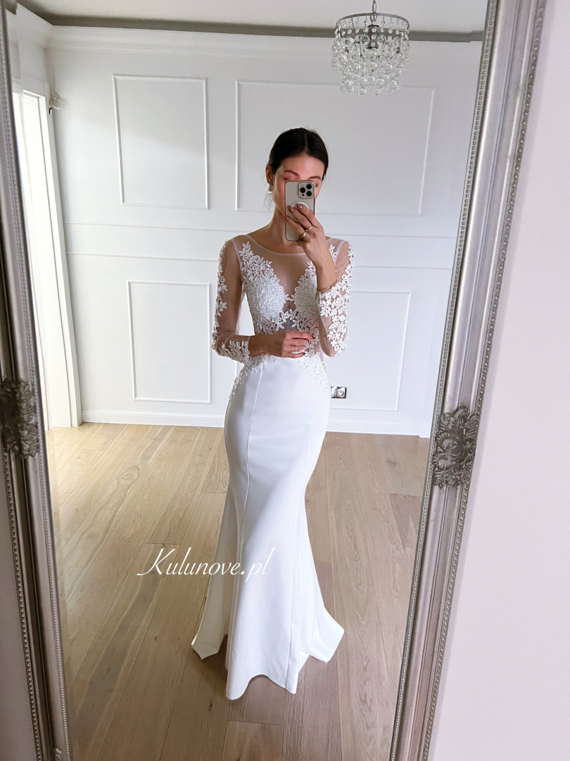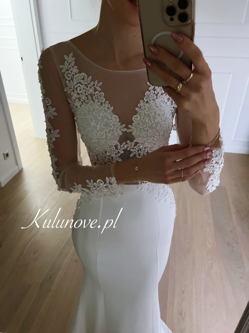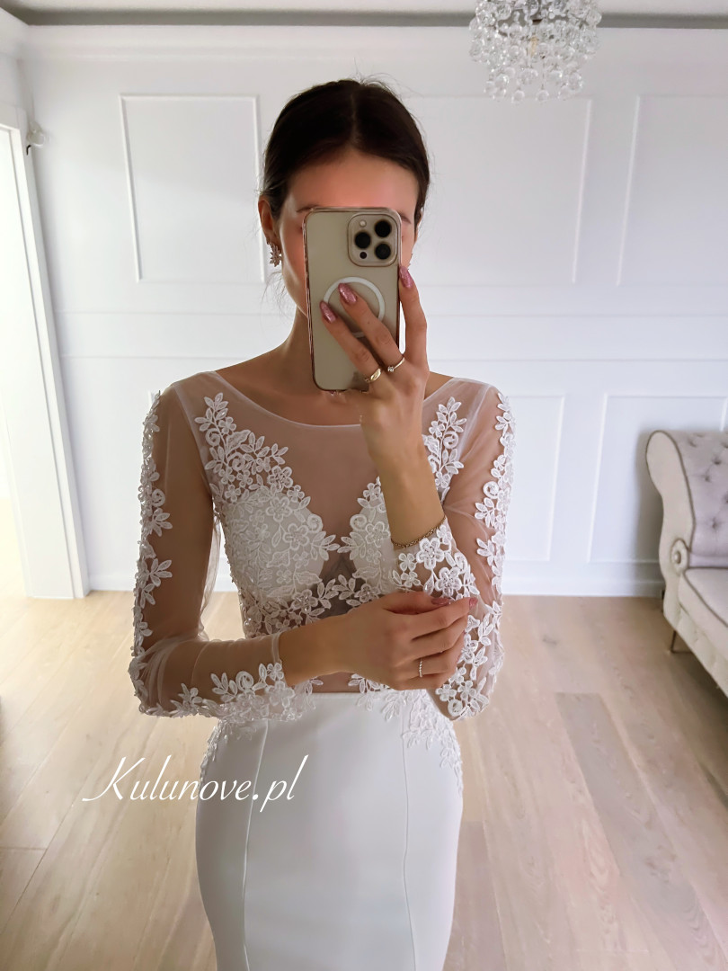 Short exclusive ecru wedding veil, delicately decorated with lace with leaves