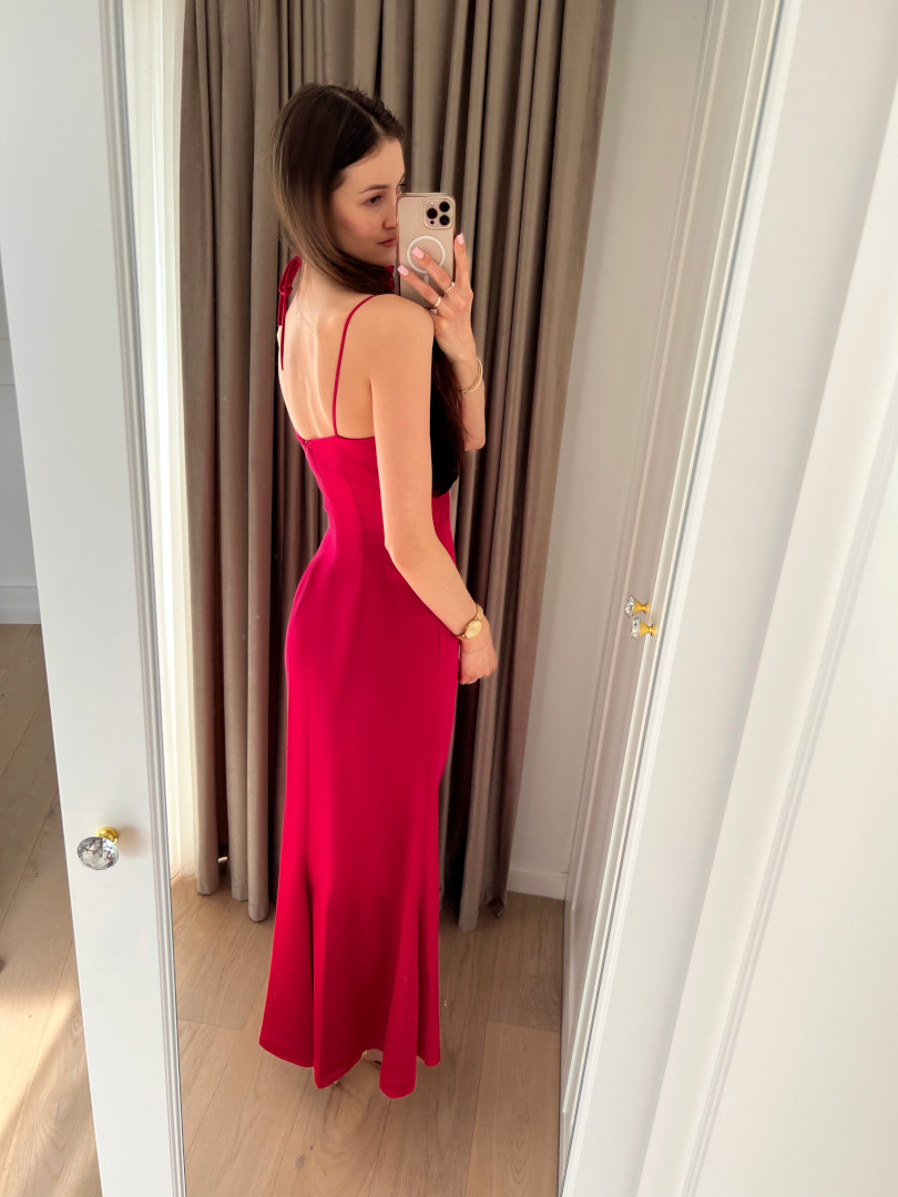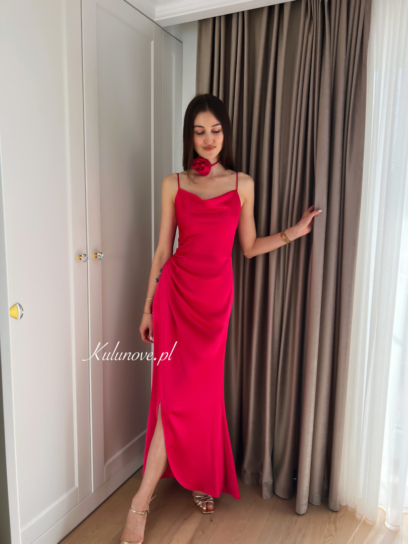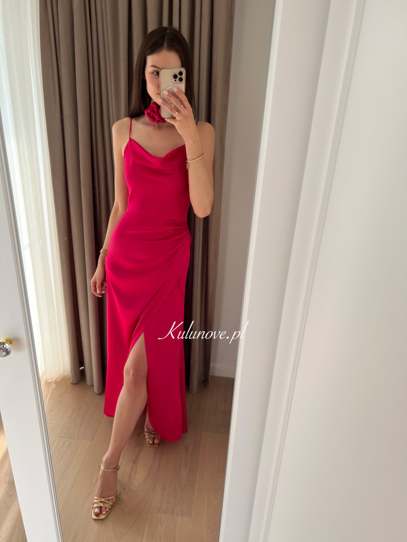 Blair - elegant satin maxi dress in fuchsia color.