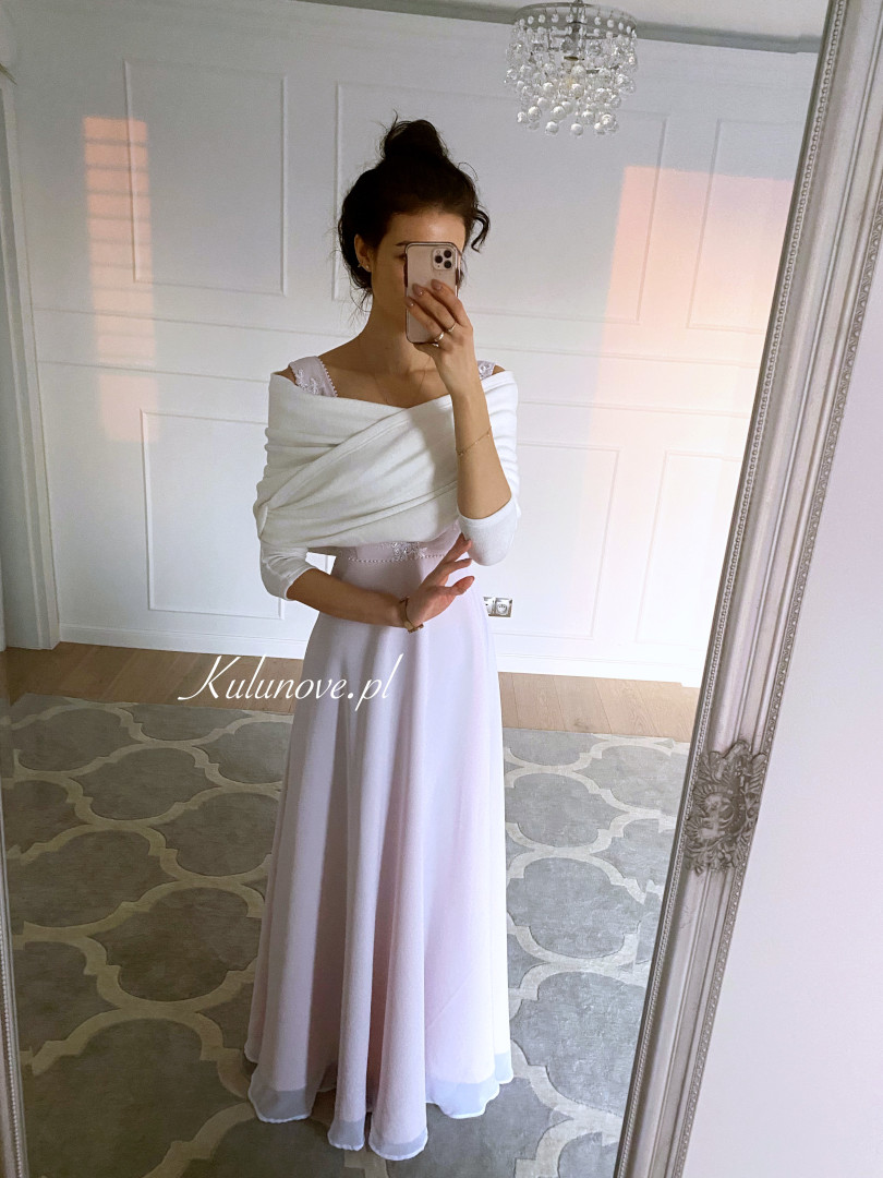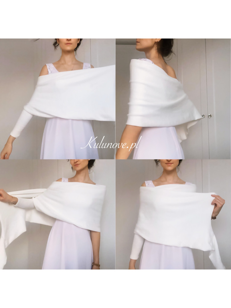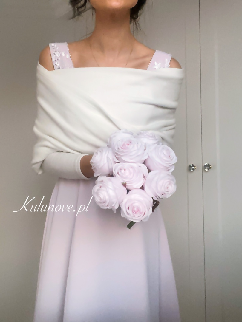 An elegant accessory that subtly complements a wedding outfit. Perfect for cooler days or as a stylish cover-up for a church ceremony.