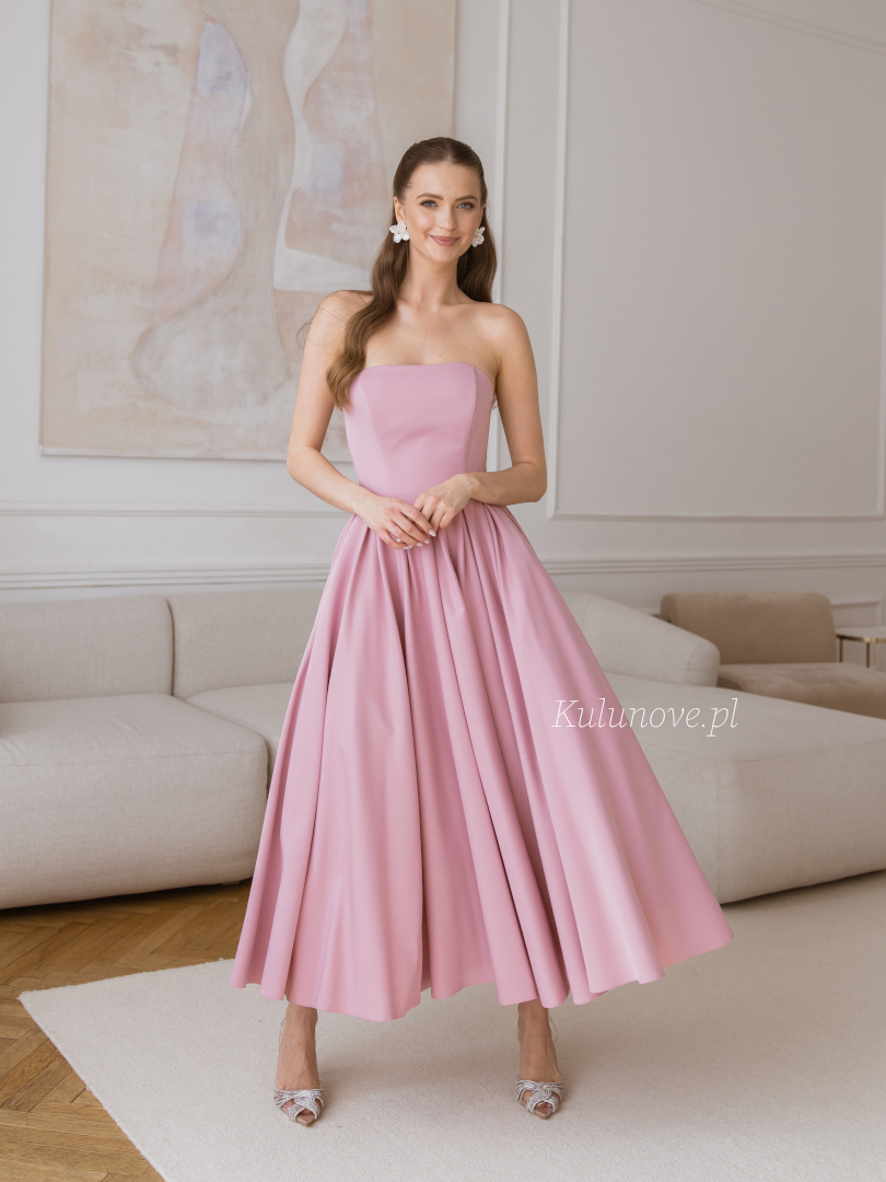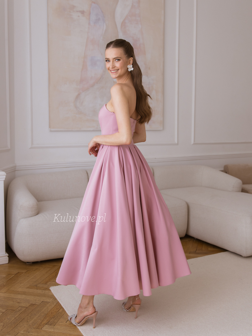 Bombshell midi - romantic corset midi dress in dirty pink with a voluminous bottom perfect for a wedding