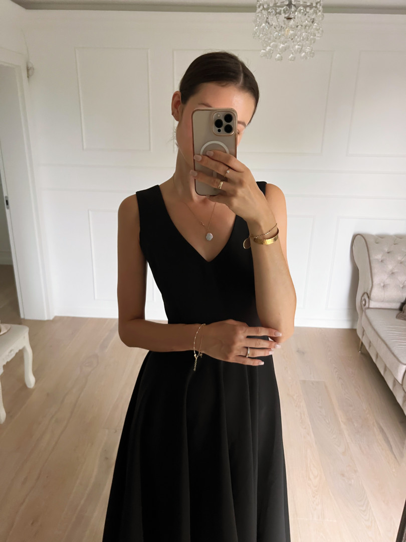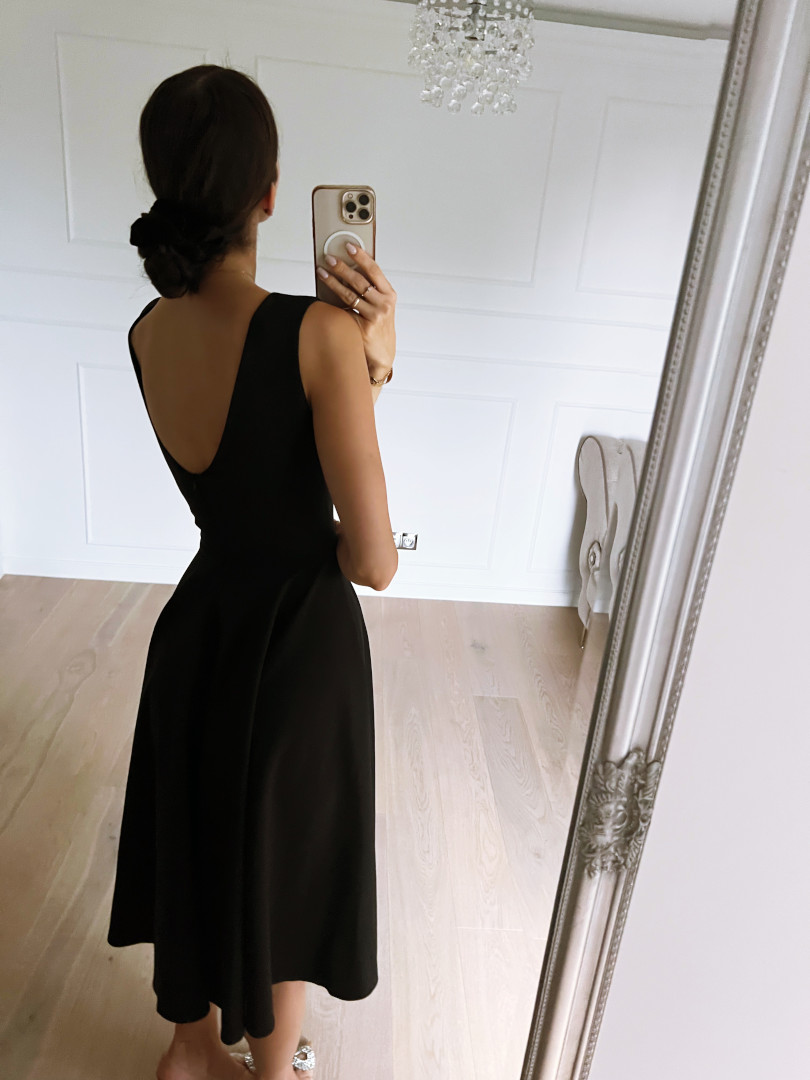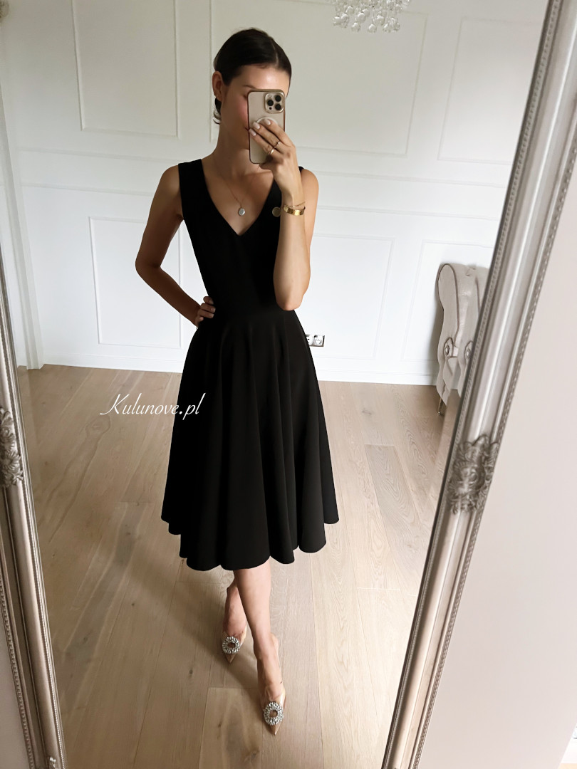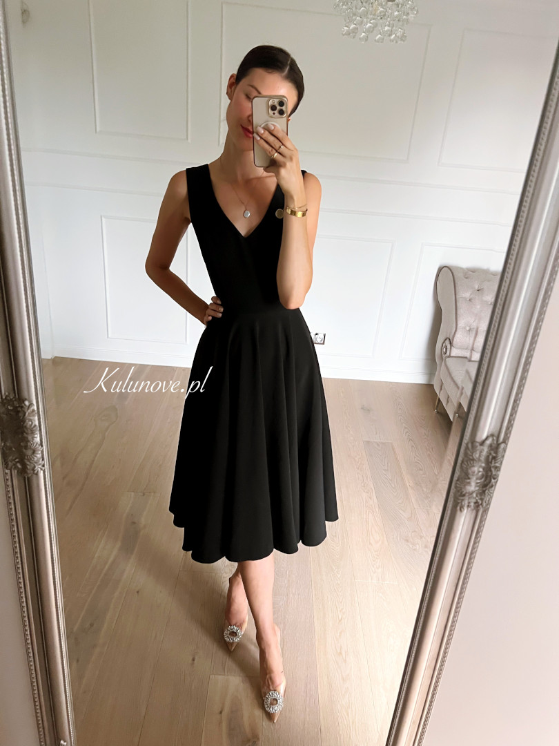 Cynthia midi - black simple classic knee-length dress with thicker straps perfect for the eighth grade prom
