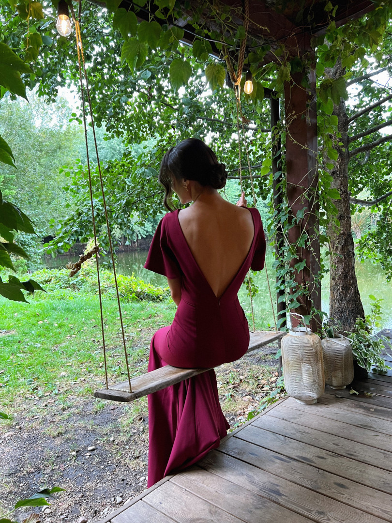 The dress perfectly emphasizes feminine shapes, ideal for an hourglass figure.