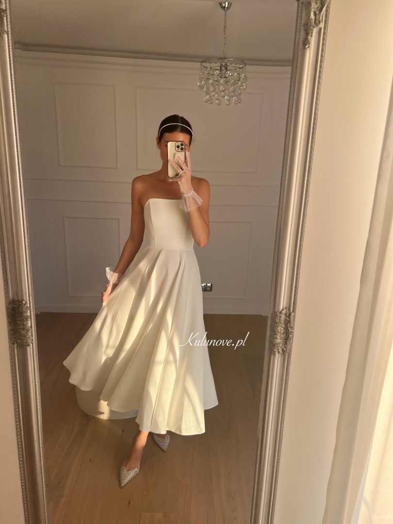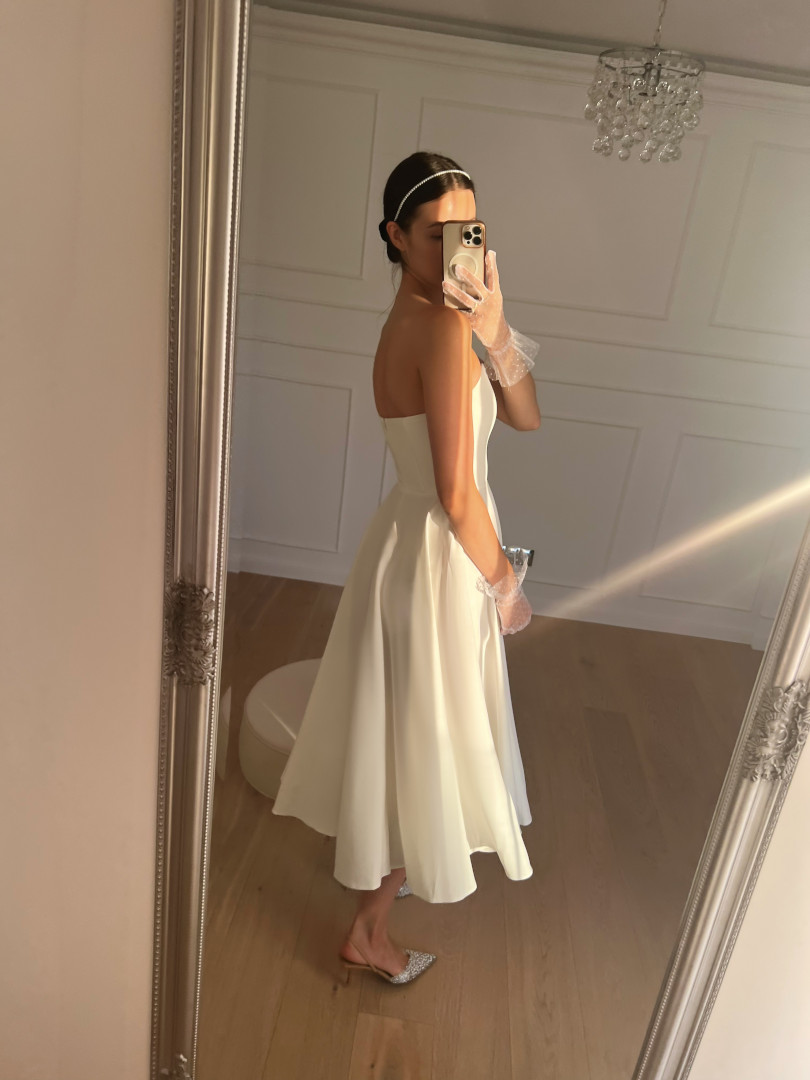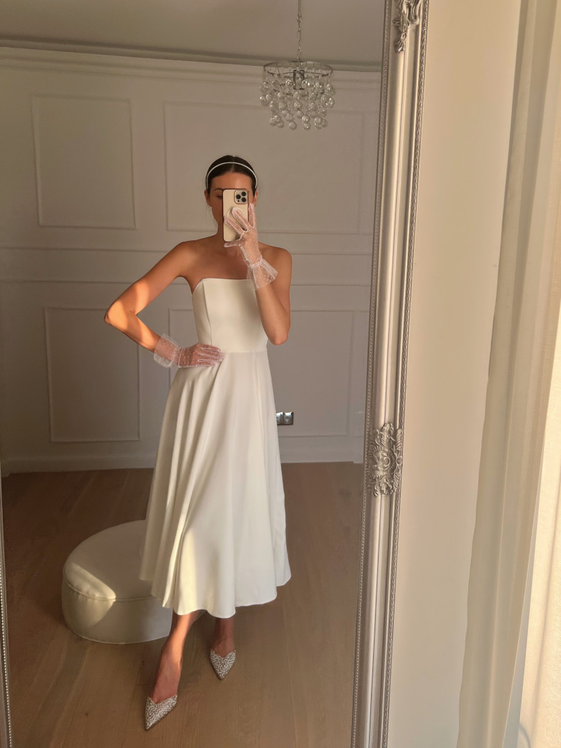 Length: Measure the length from the shoulder, or from where you want the top line of the dress to be, to where the creation should end.