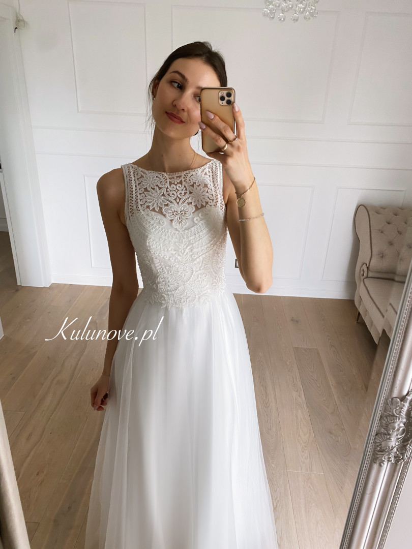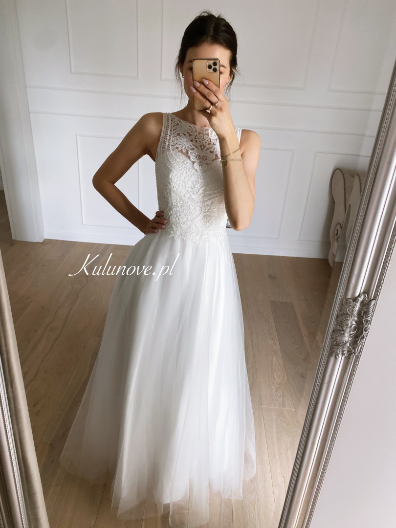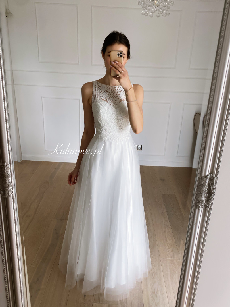 Please take extra care when fastening the dress. We suggest that you make sure the tulle is evenly aligned and not too close to the zipper before fastening. Attention to this detail will help avoid accidental damage and prolong the life of the product.