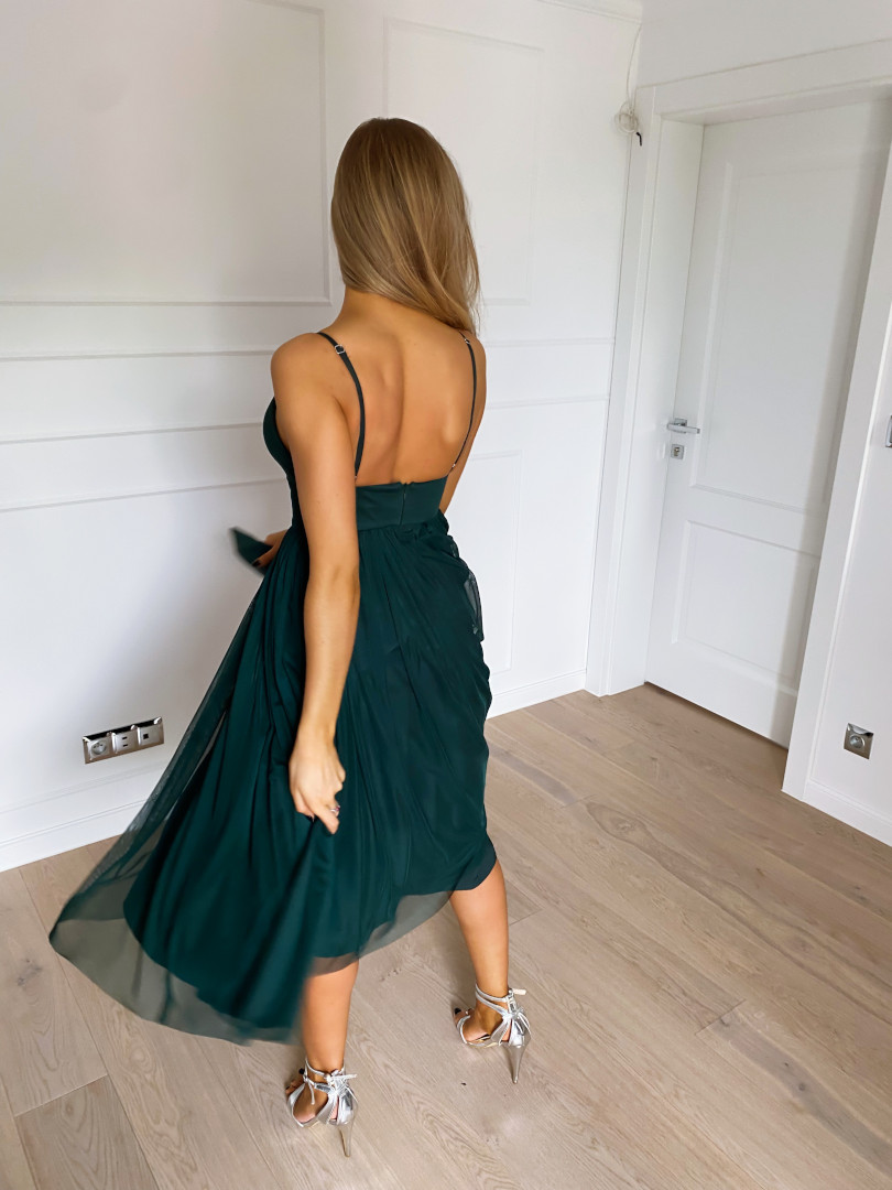 Please take special care when fastening the dress. We suggest making sure the tulle is evenly aligned and not too close to the zipper before fastening. Attention to this detail will help avoid accidental damage and prolong the life of the product.