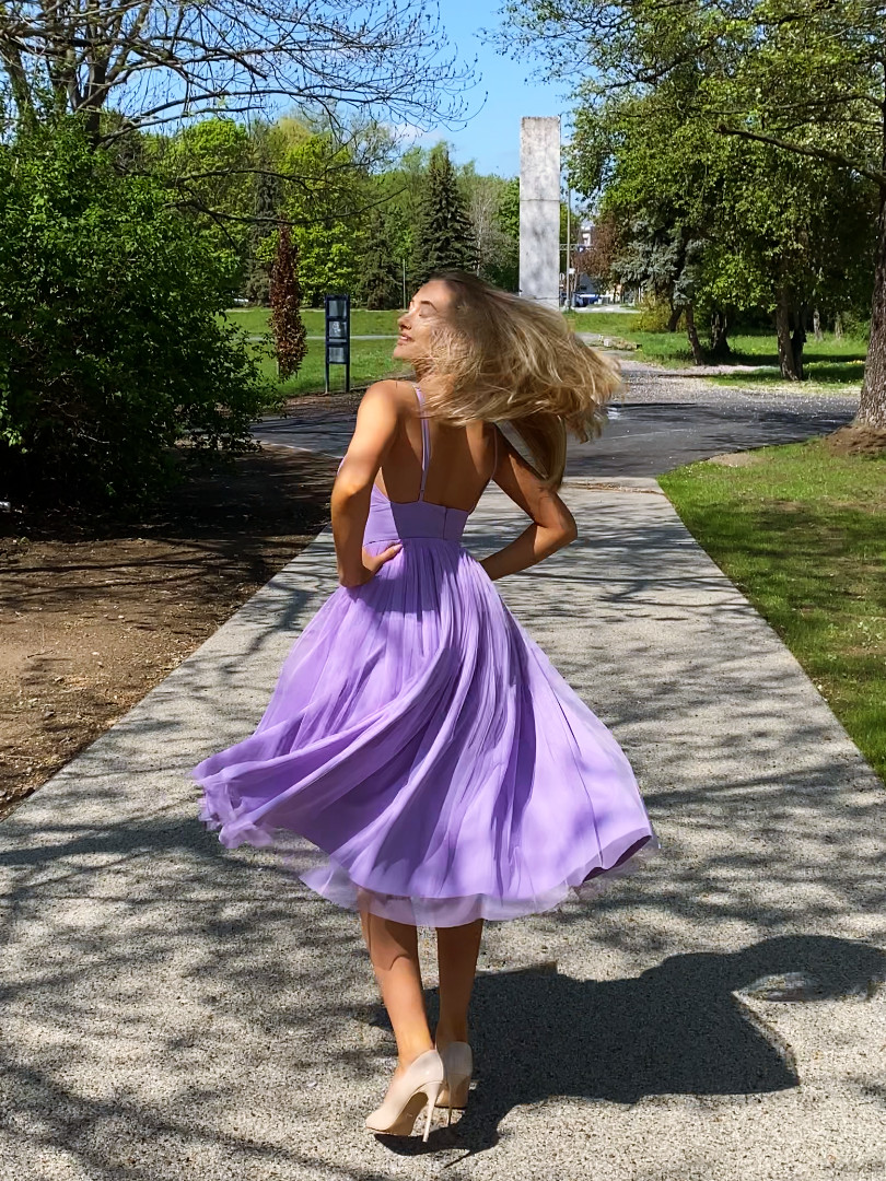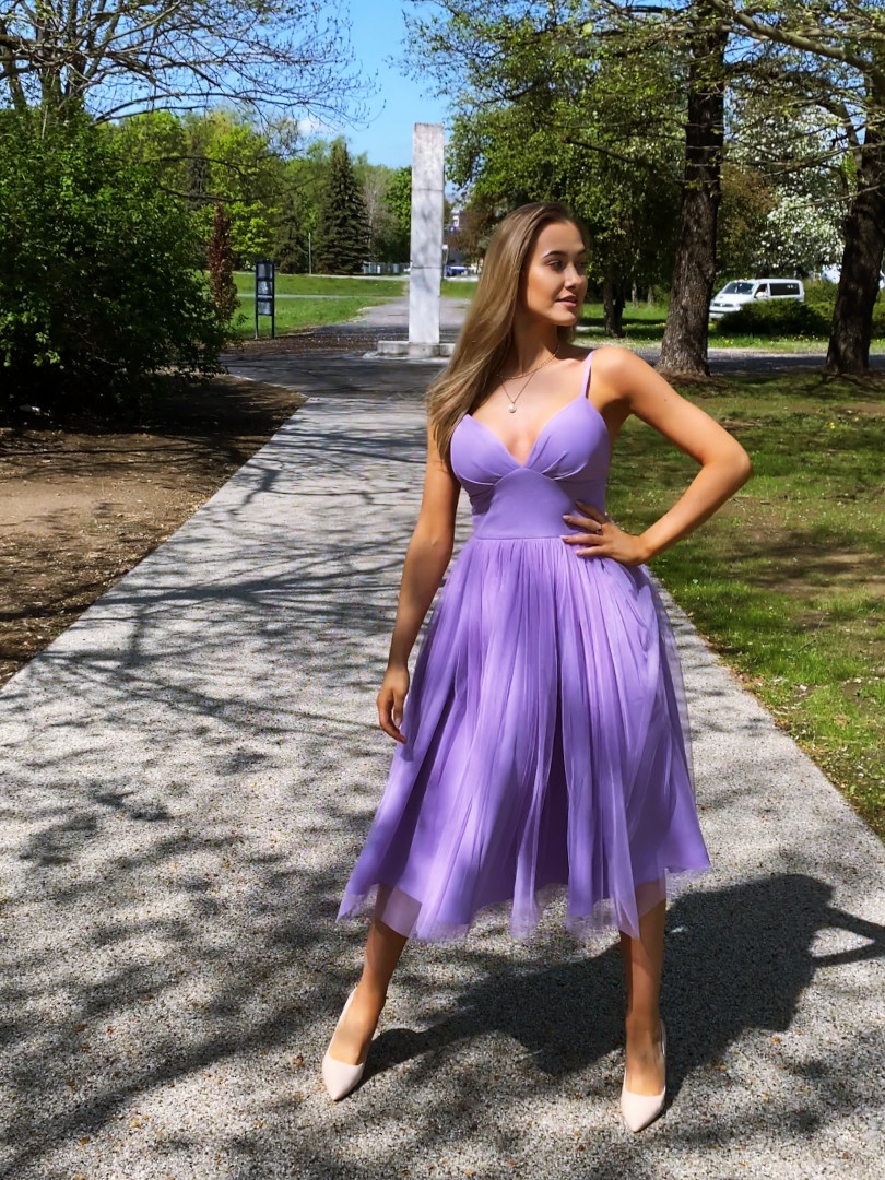 Cindrella heather - tulle midi dress on wide circle in heather color