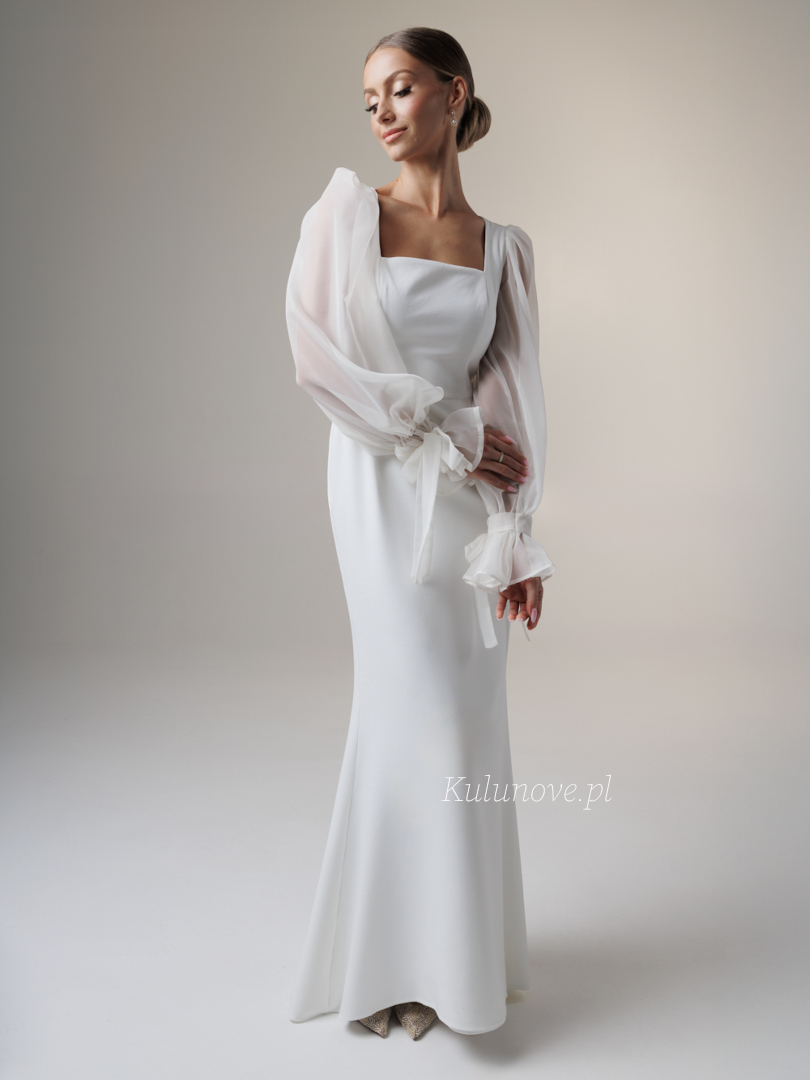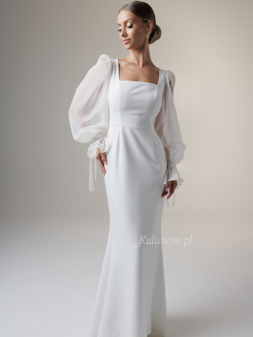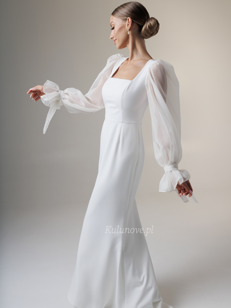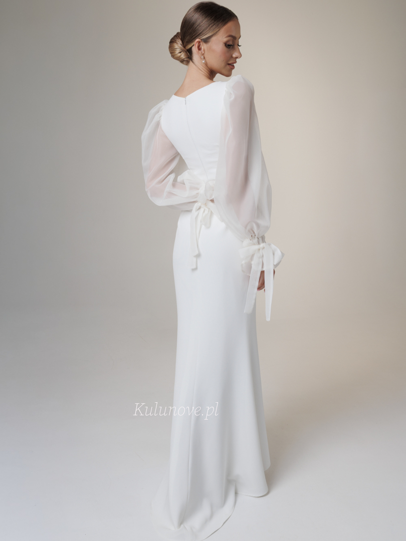 Claire - minimalist gown with romantic transparent sleeves finished with a bow