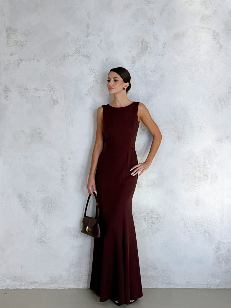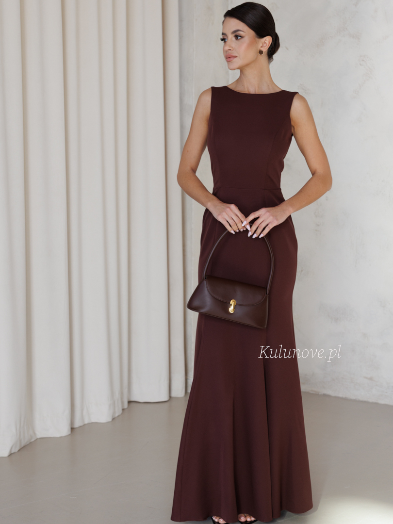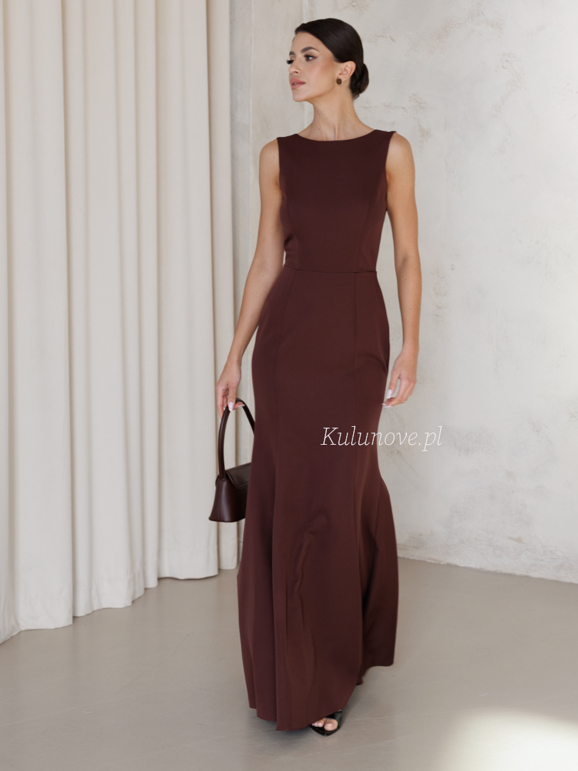 Elegant dress in a shade of deep chocolate is a proposal for women who want to bet on a classic, but unconventional styling.