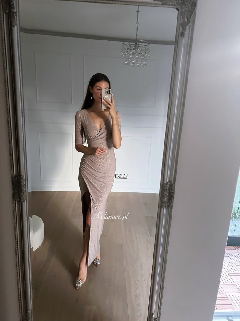 The dress shimmers beautifully. Also ideal for pregnant women.