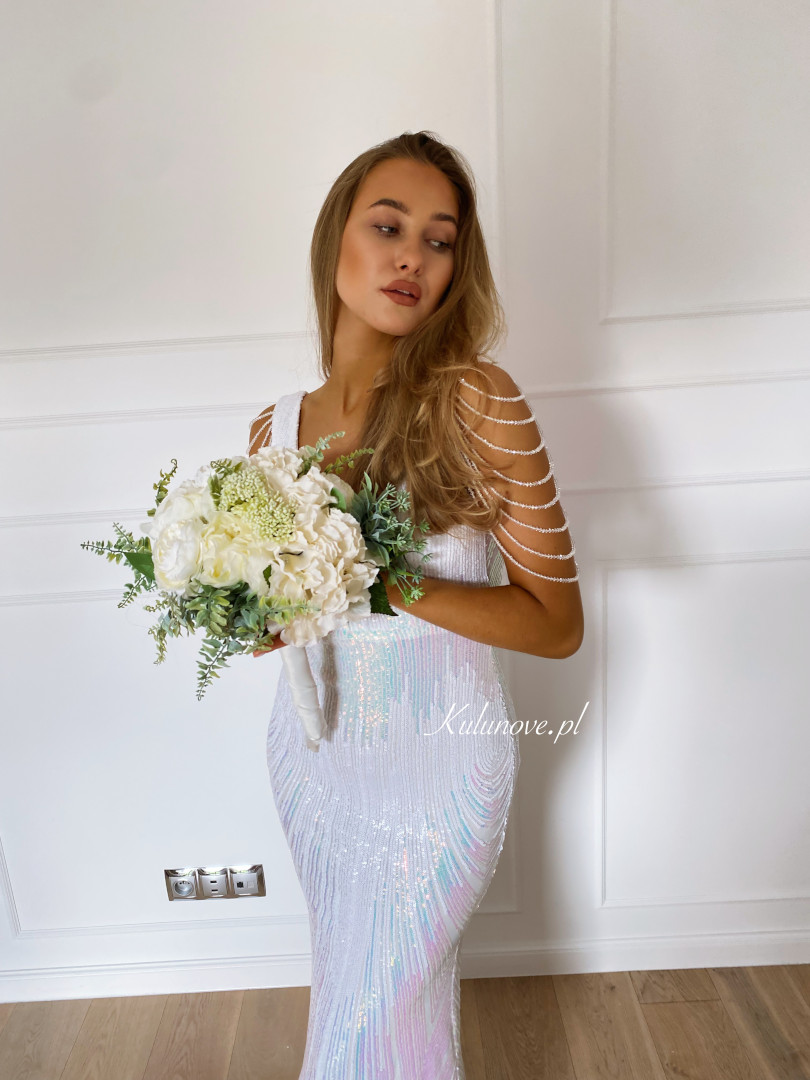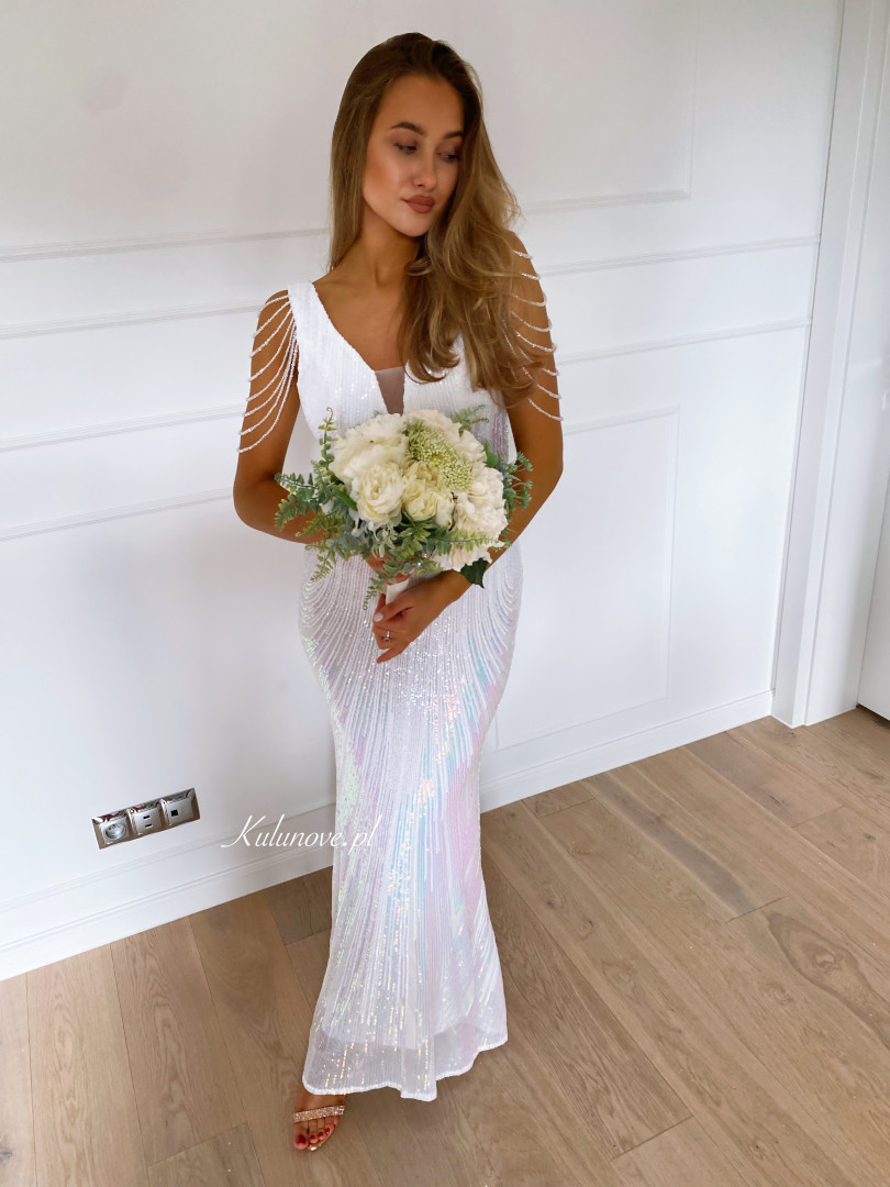 Diamond coral white - long sequin dress in white