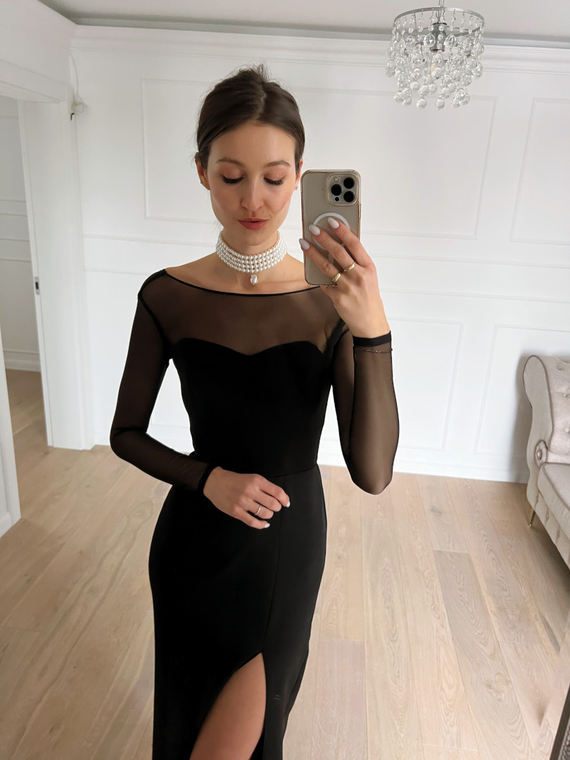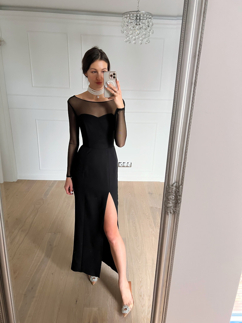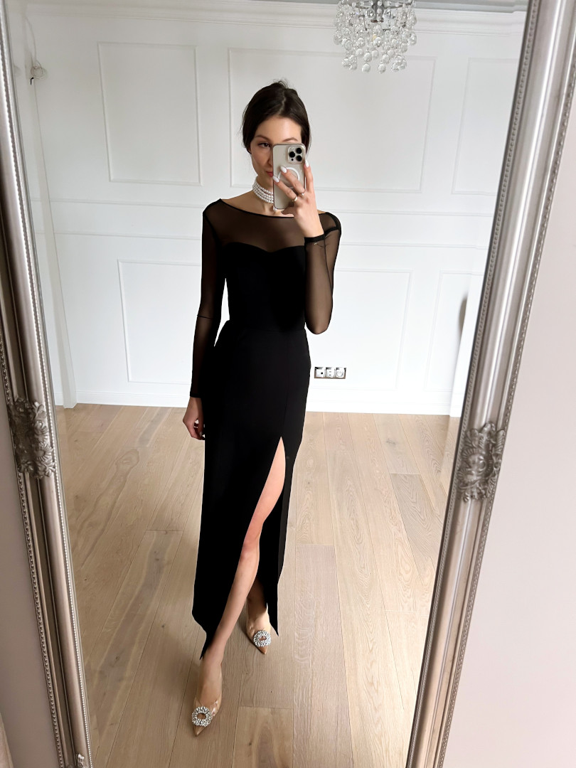 Hannah-long corset dress in black with an open top Length
