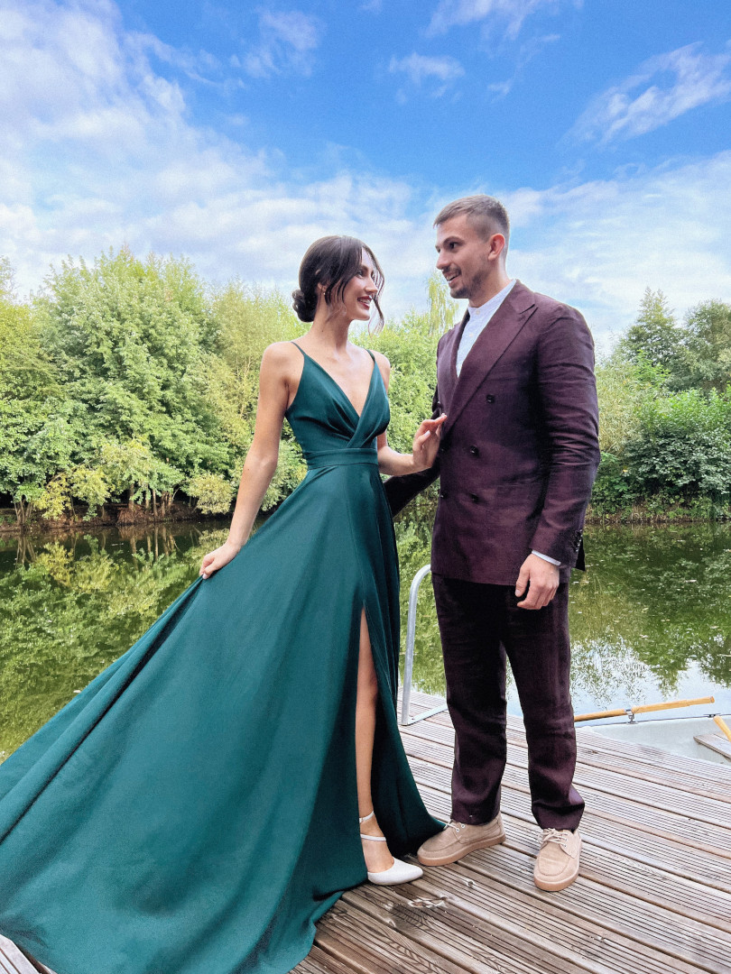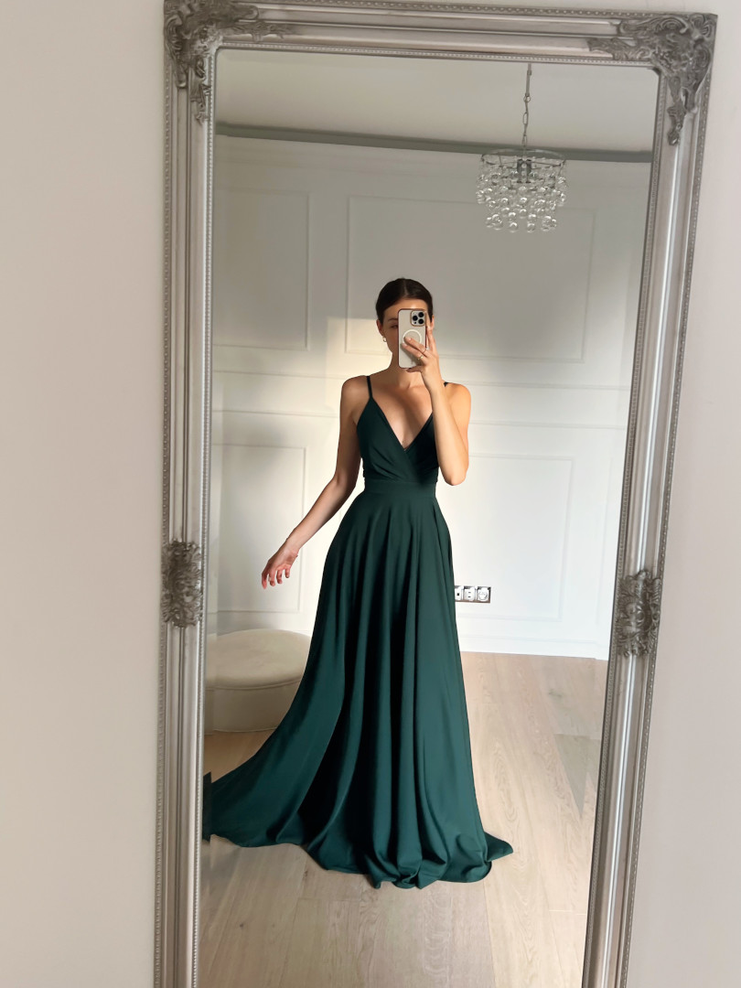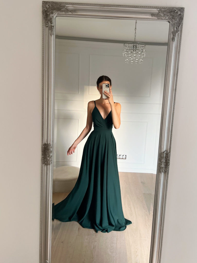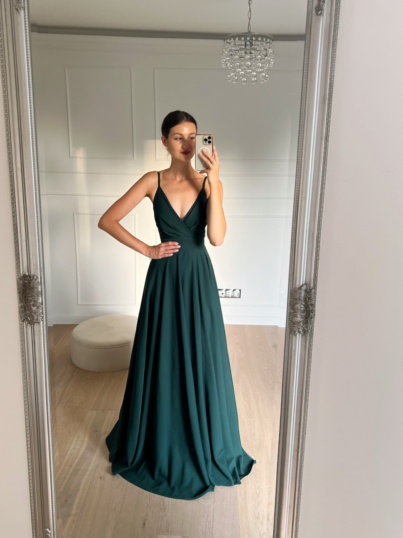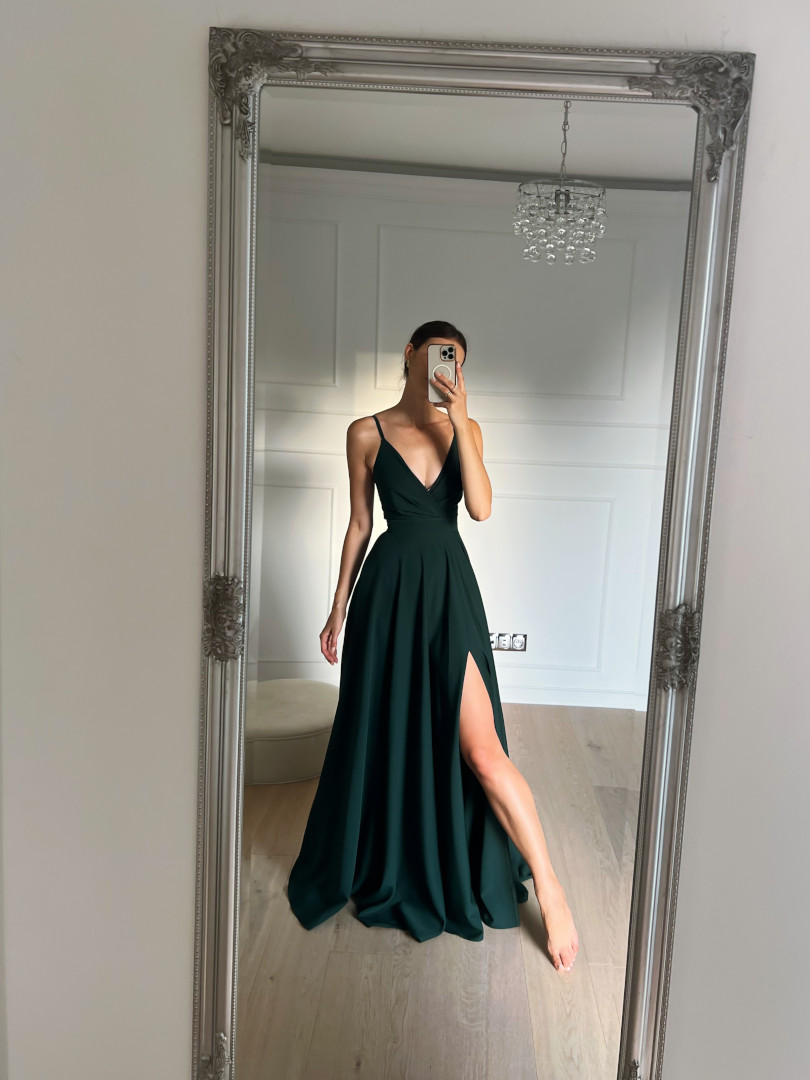 Elisabeth maxi - bottle green thin strapless dress with envelope top and leg openings