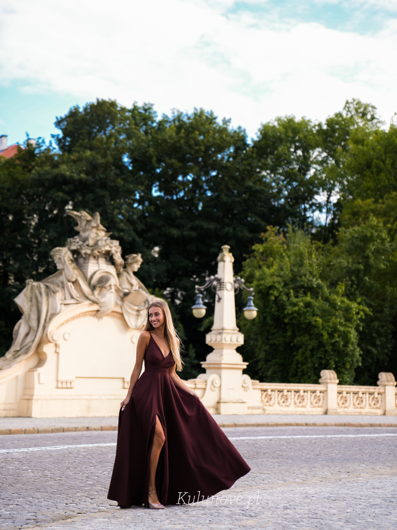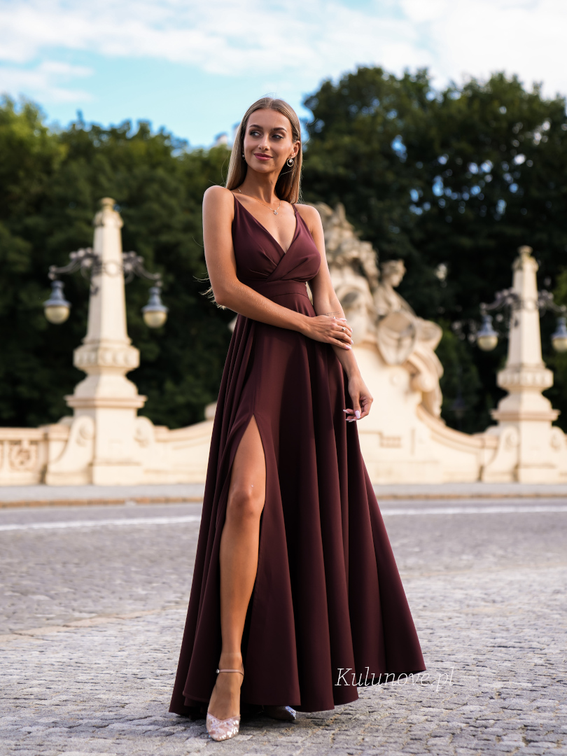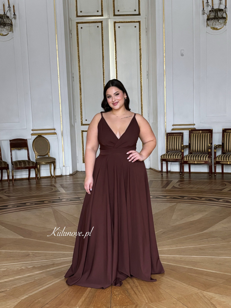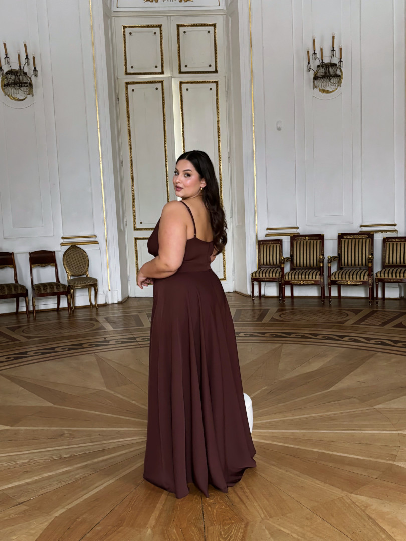Elisabeth maxi - chocolate strapless maxi dress with overlap neckline.