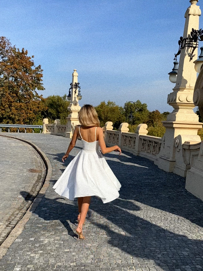The dress is sewn on a wide circle, looks amazing while dancing.