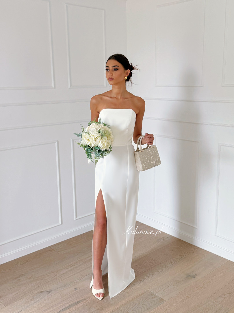 Emily - minimalist wedding dress in ecru color with simple corset top and leg slit