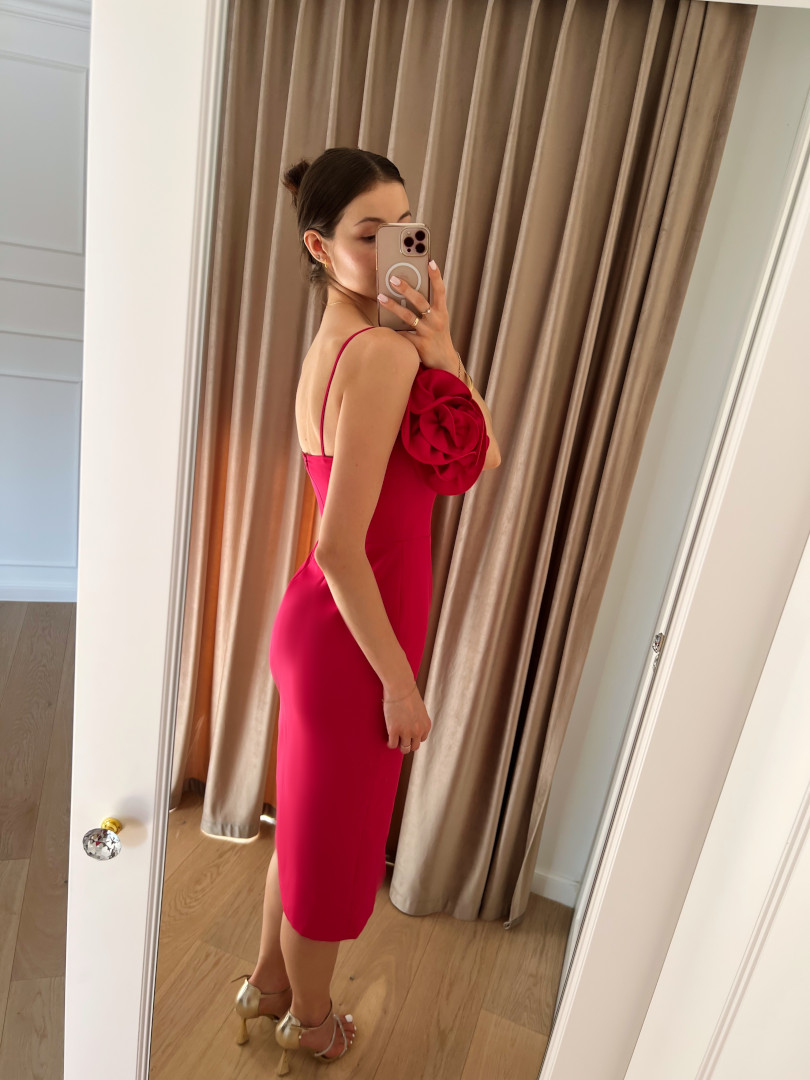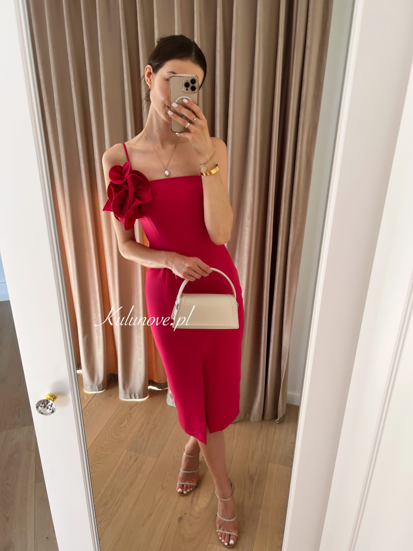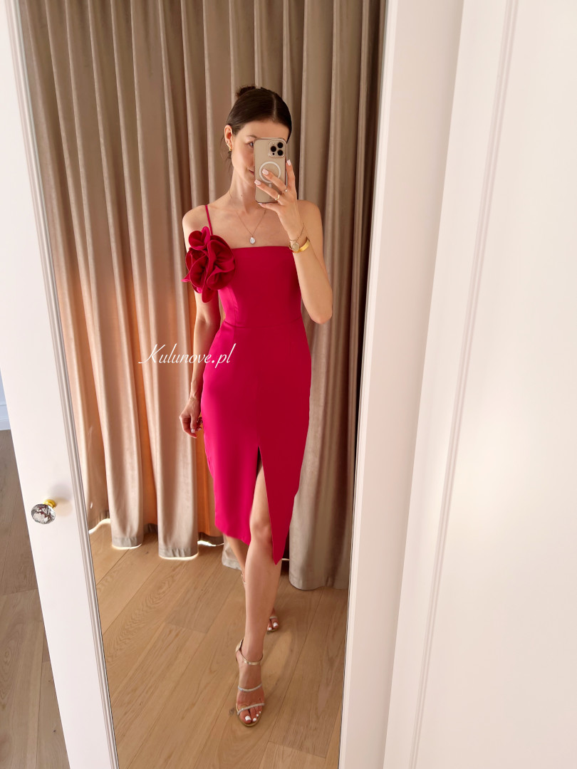 Floral - fitted pencil midi dress with flower in fuchsia color