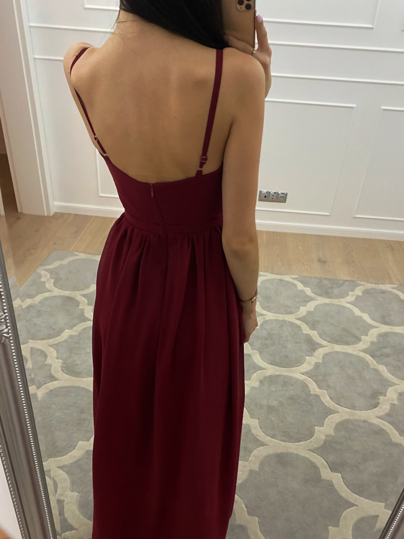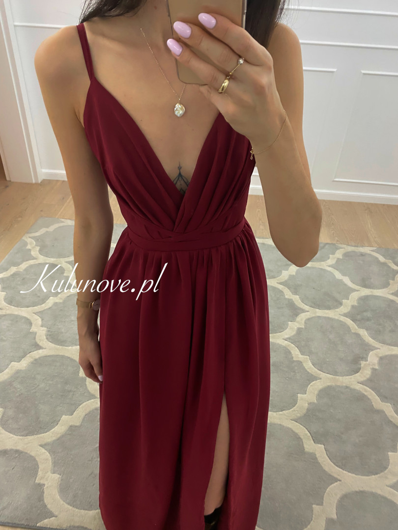 Francesca - maroon chiffon maxi dress with deep neckline
