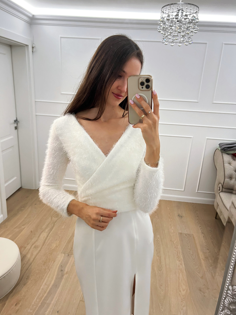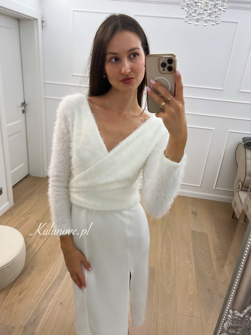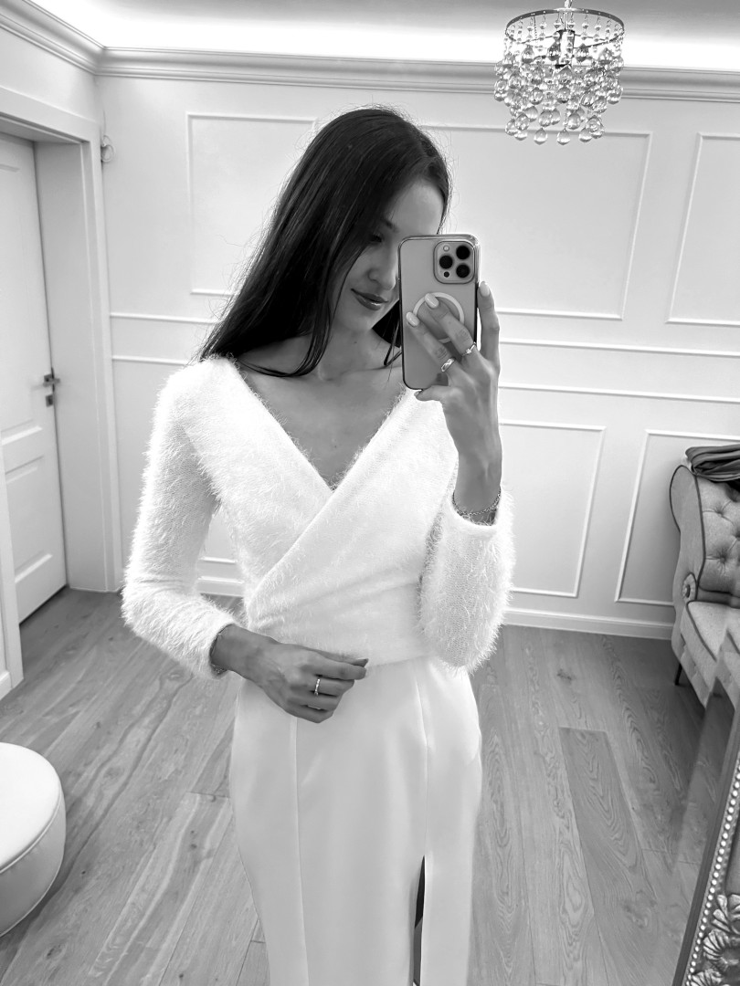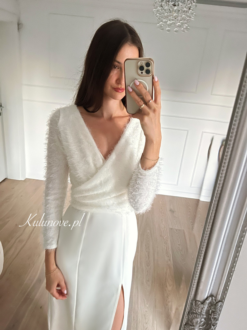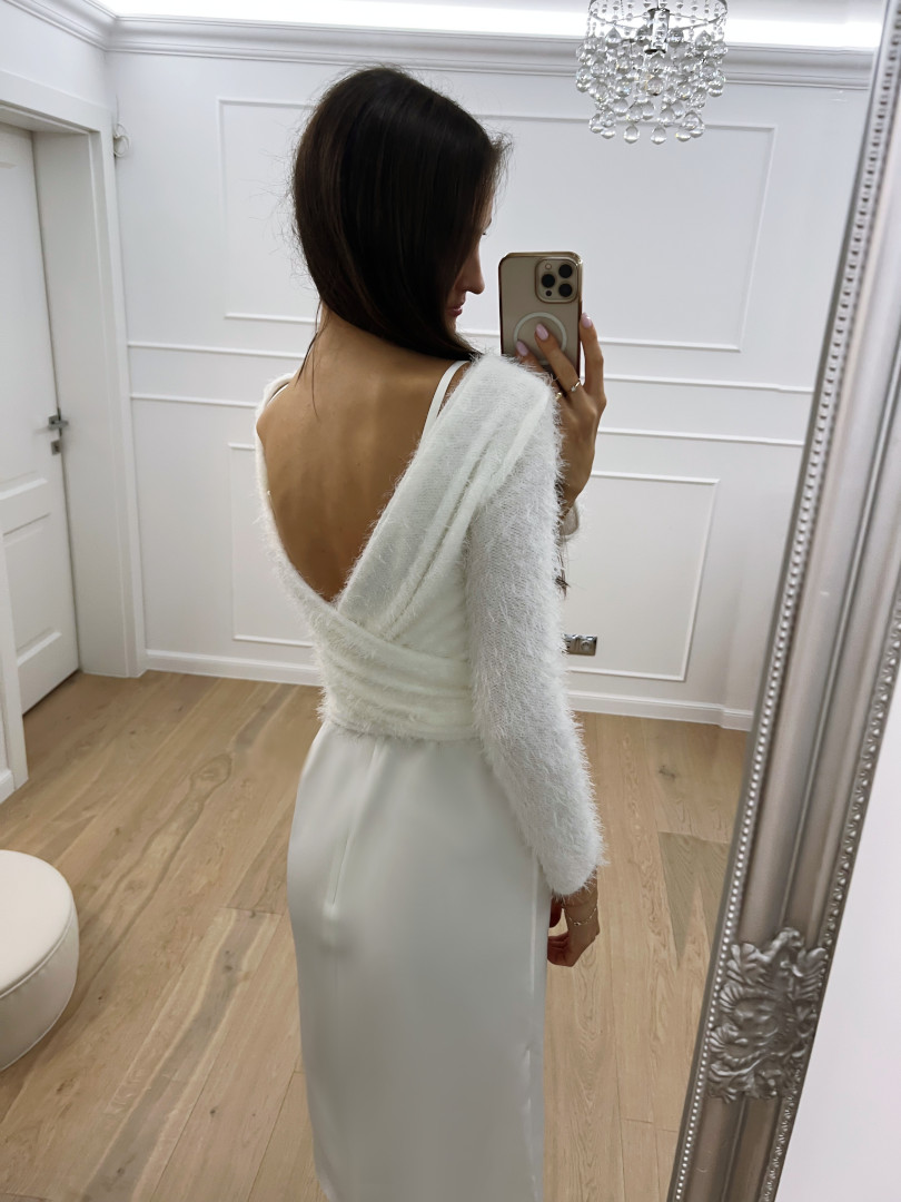 This garment will match in color with most of our models in ivory, cream and ecru.