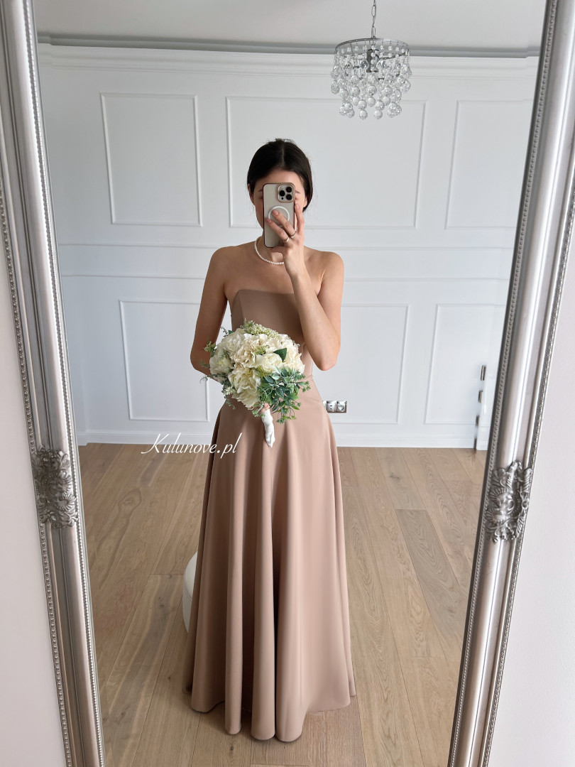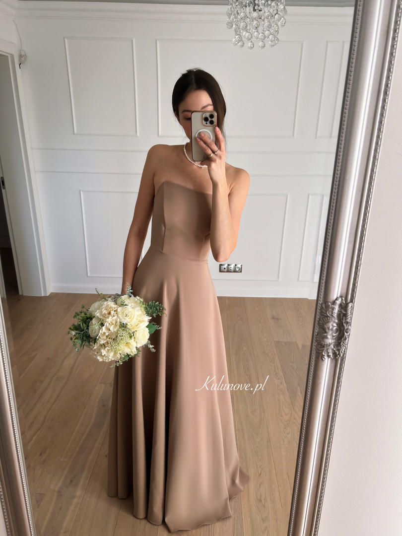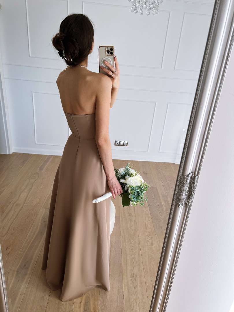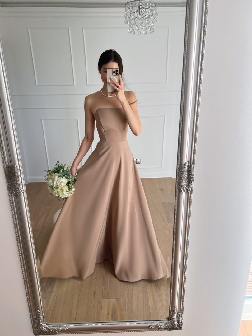 Elegant, minimalist dress ideal for bridesmaids, wedding.