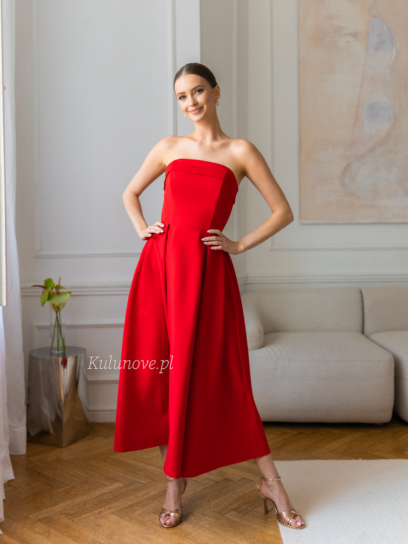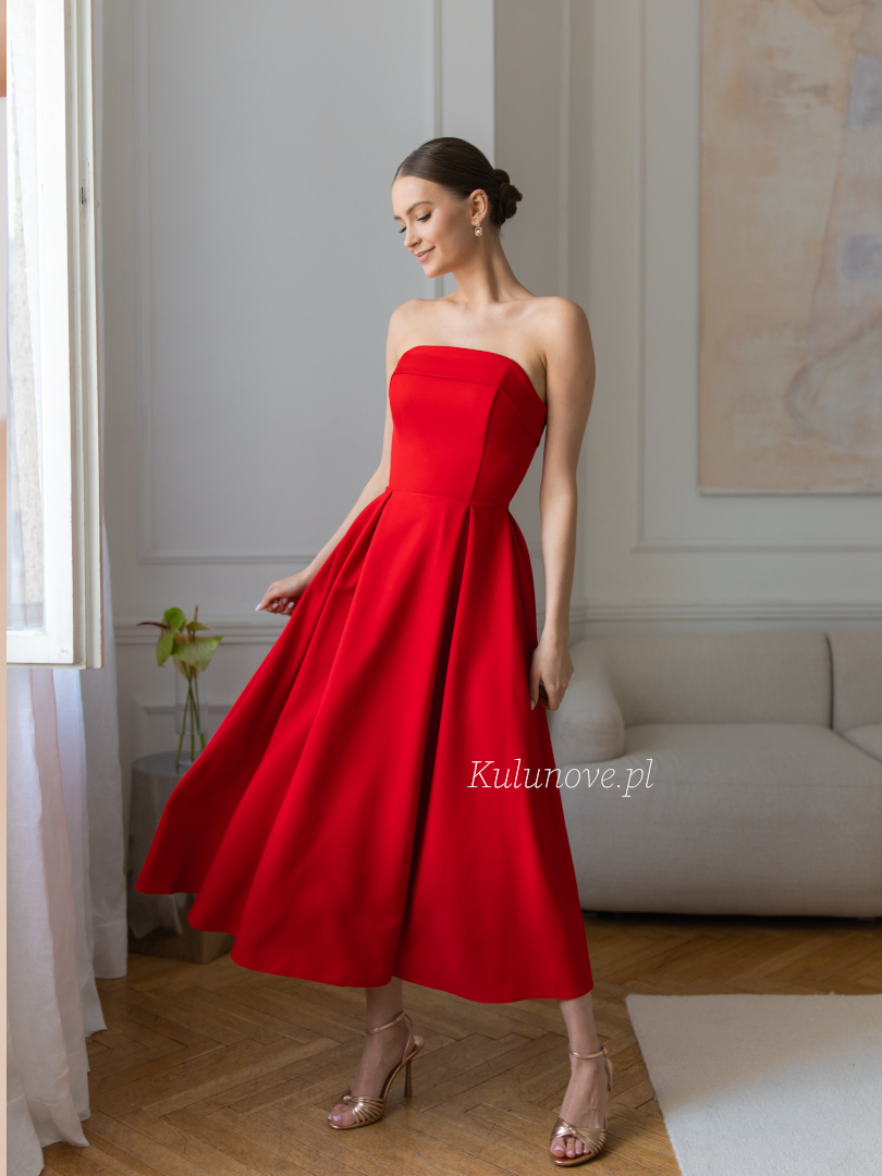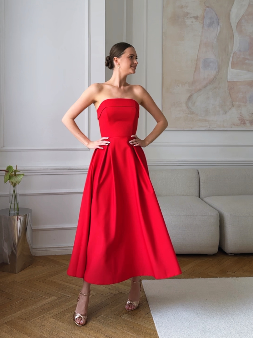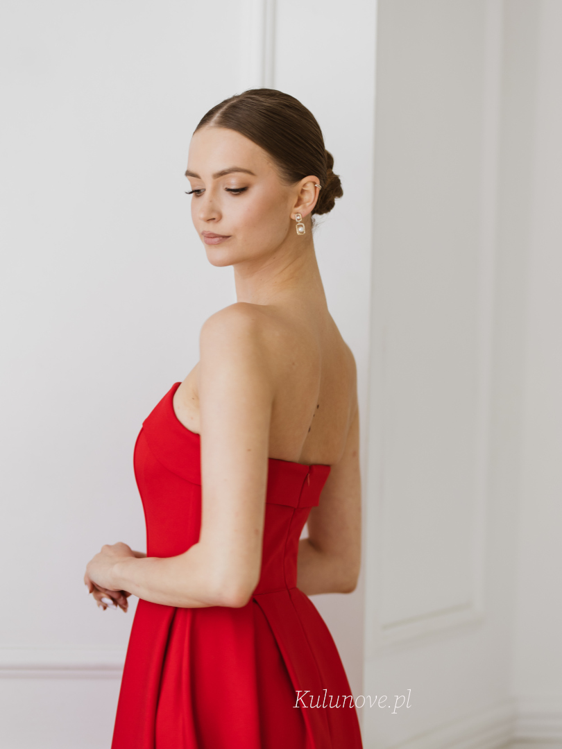 Intense red brings out the modern character of the dress, making it extremely striking.