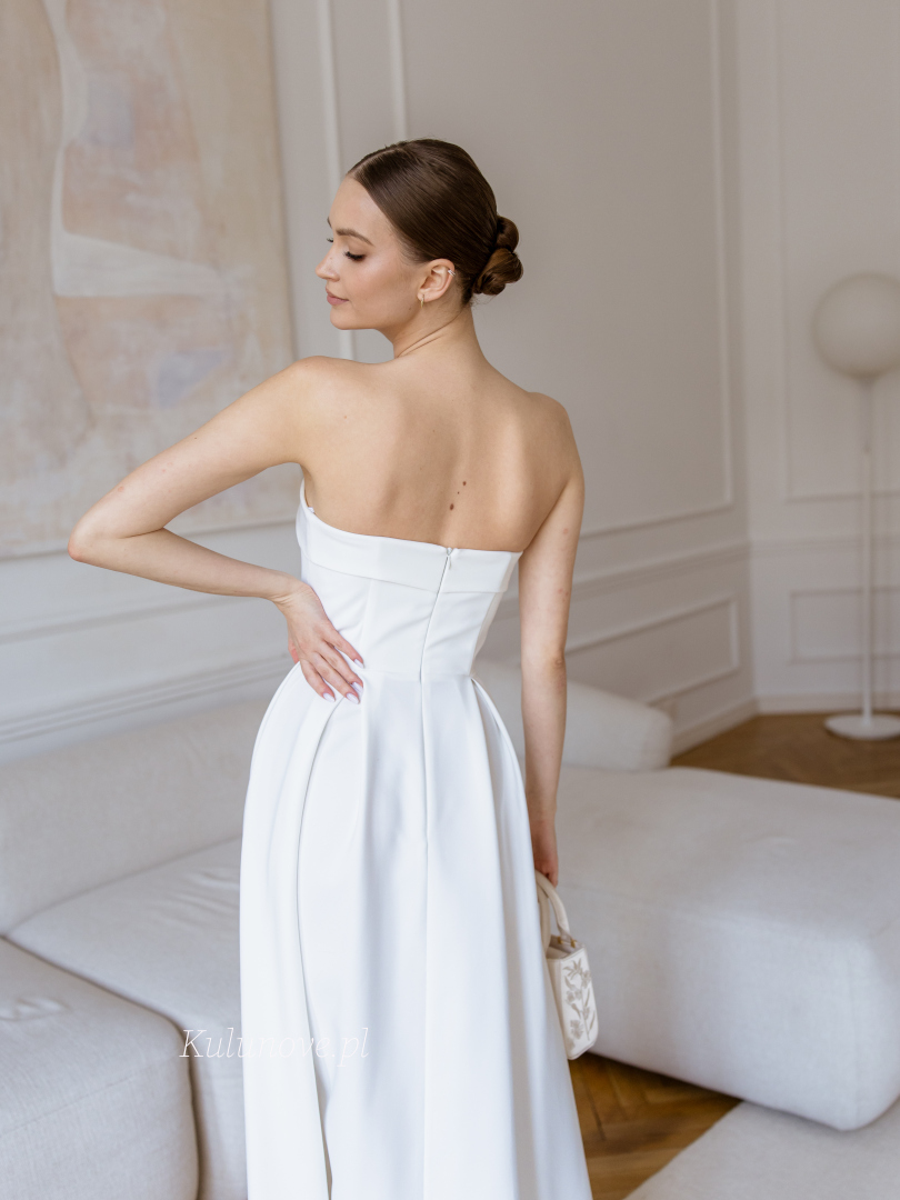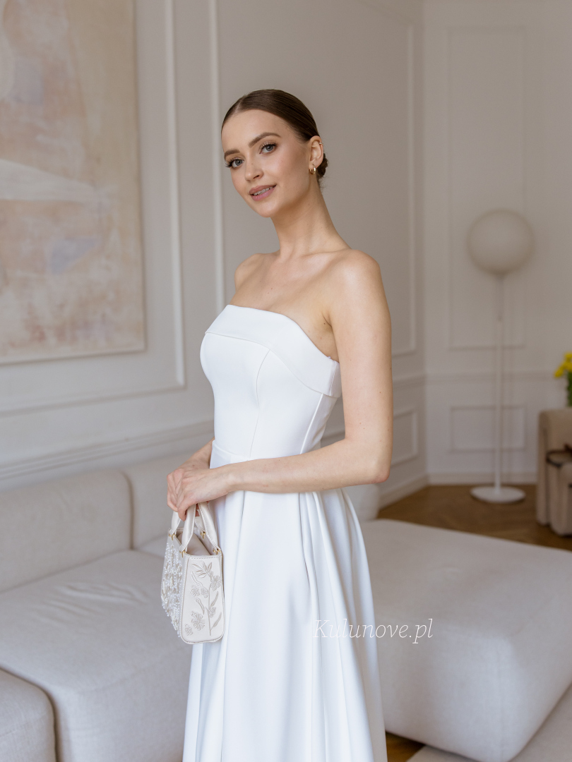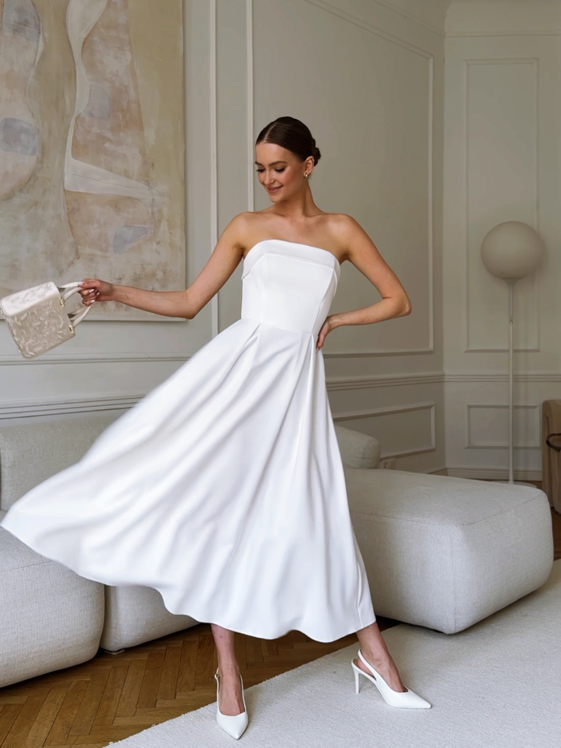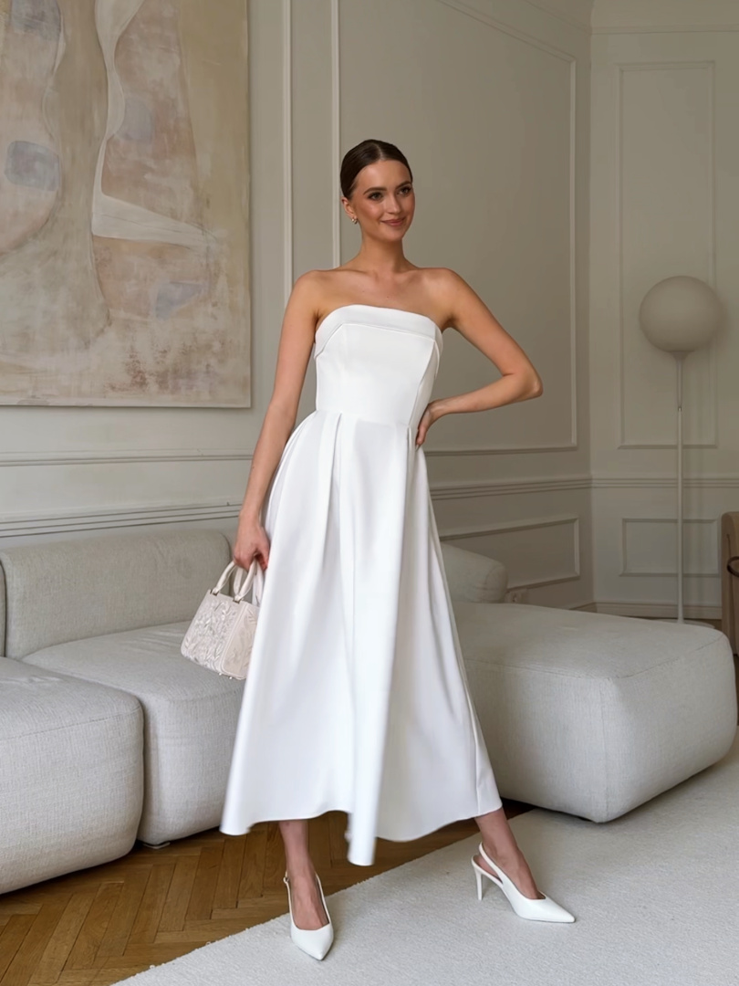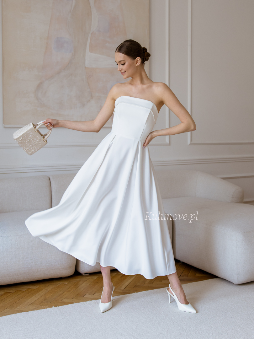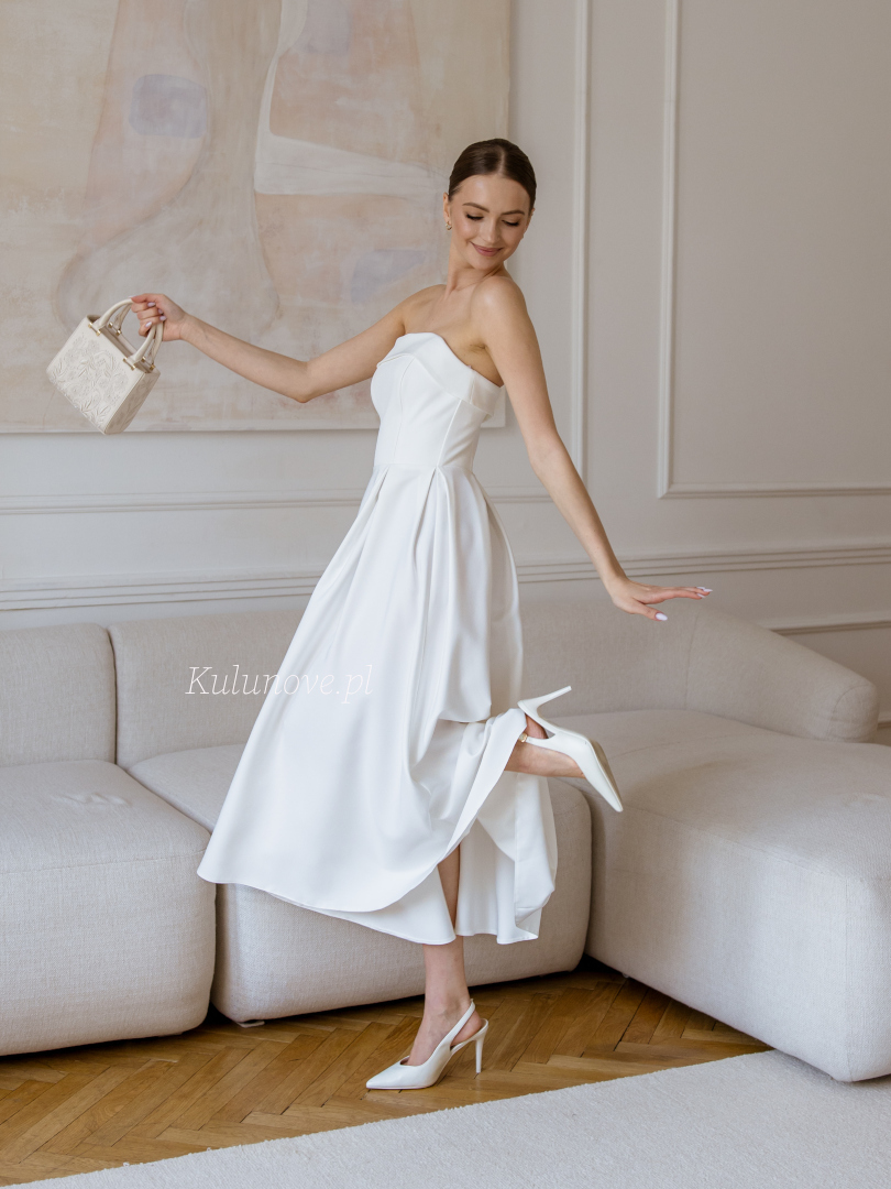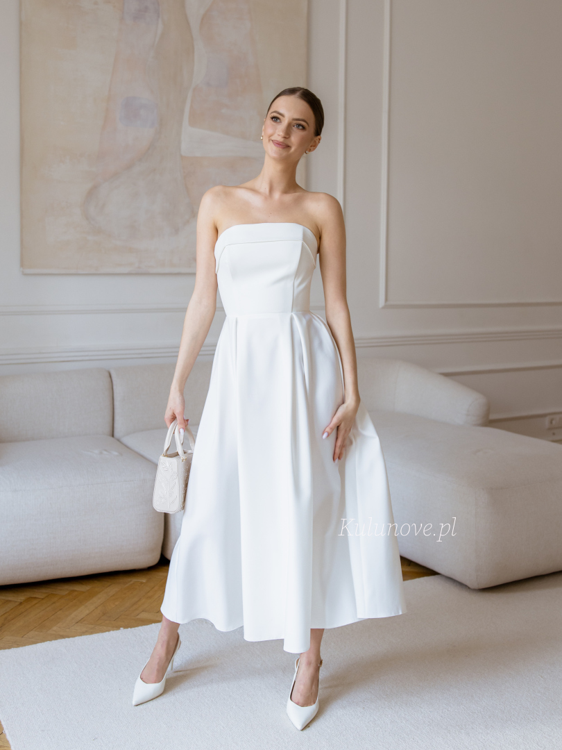 Harriet midi - wedding midi dress in ecru color on smooth bodice with top overlap