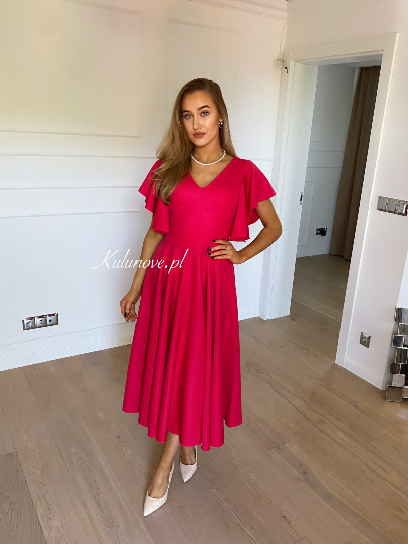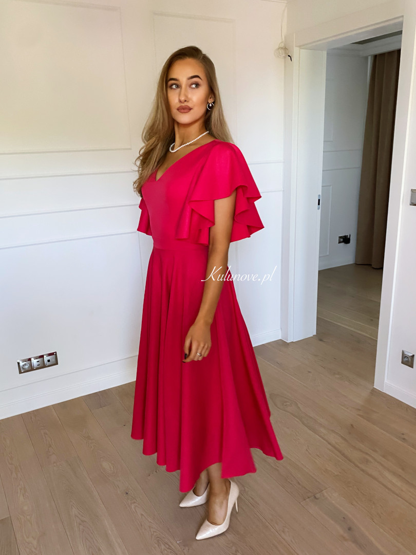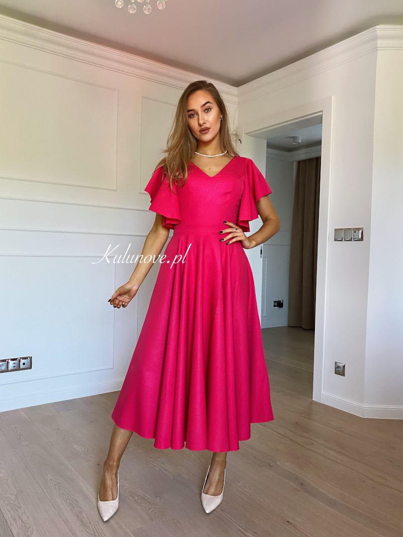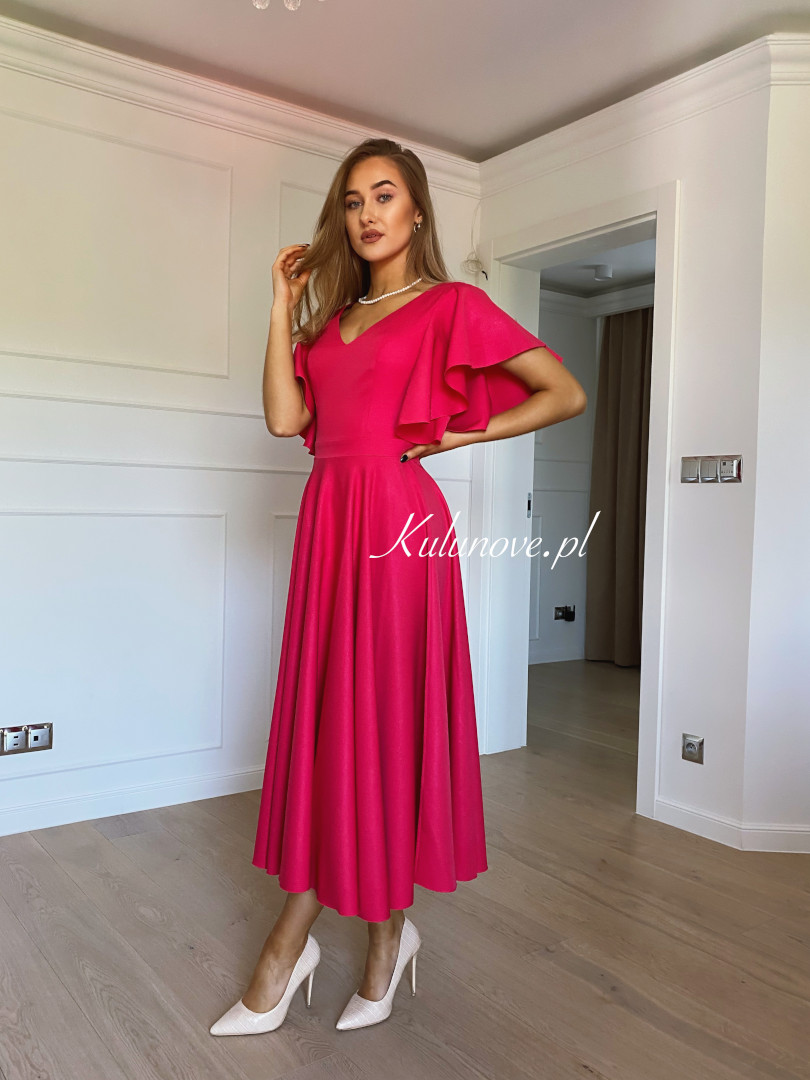 Isabella - elegant midi dress in fuchsia color with flared sleeves