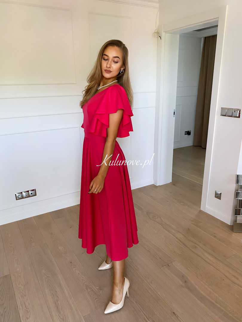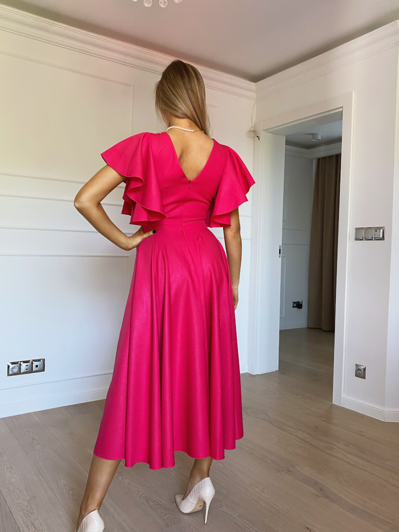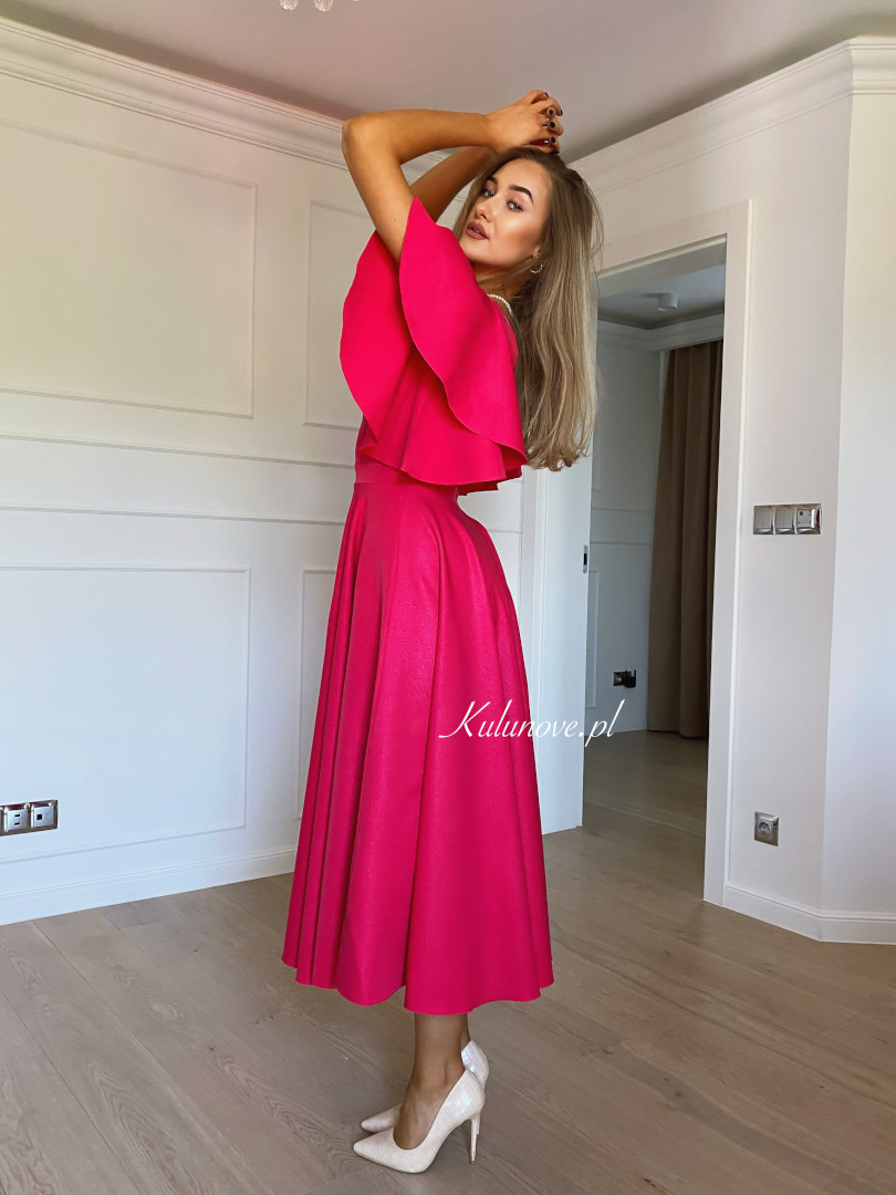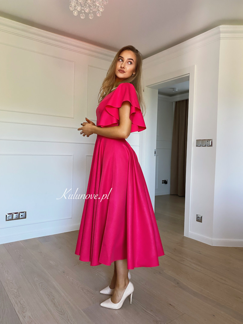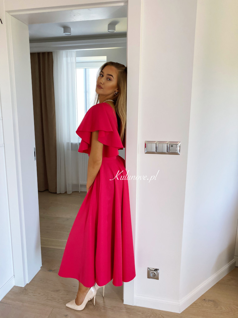 Isabella - elegant midi dress in fuchsia color with flared sleeves