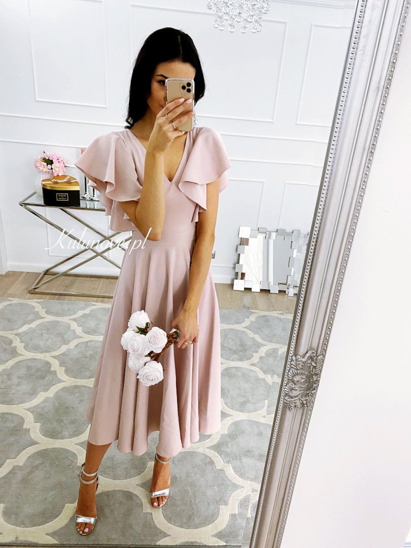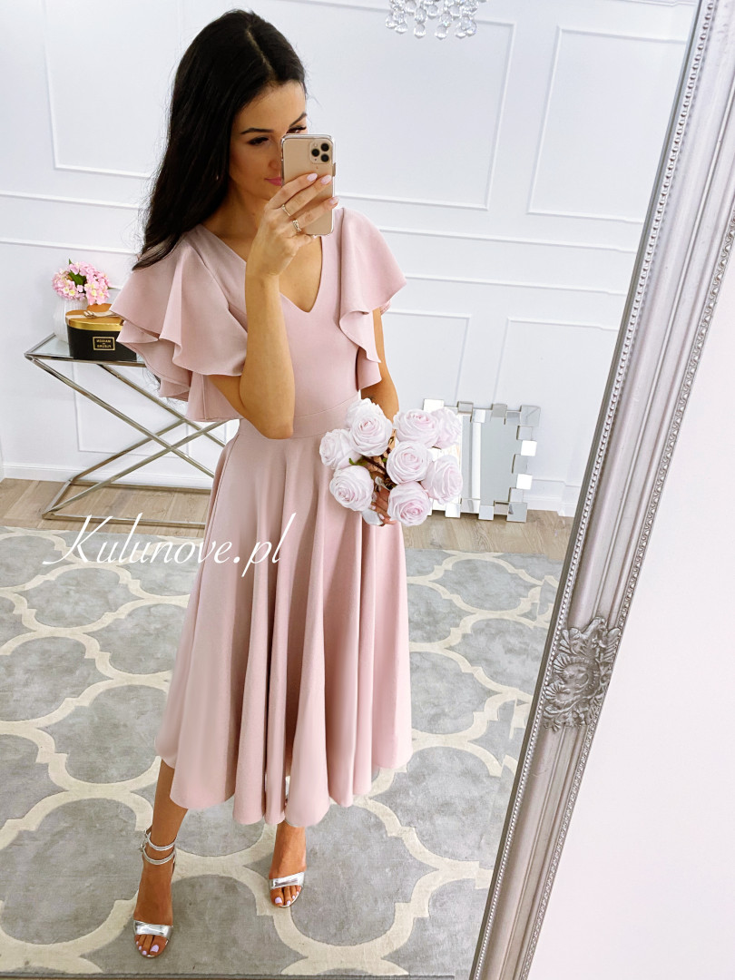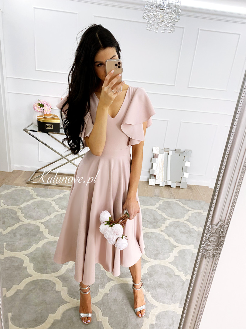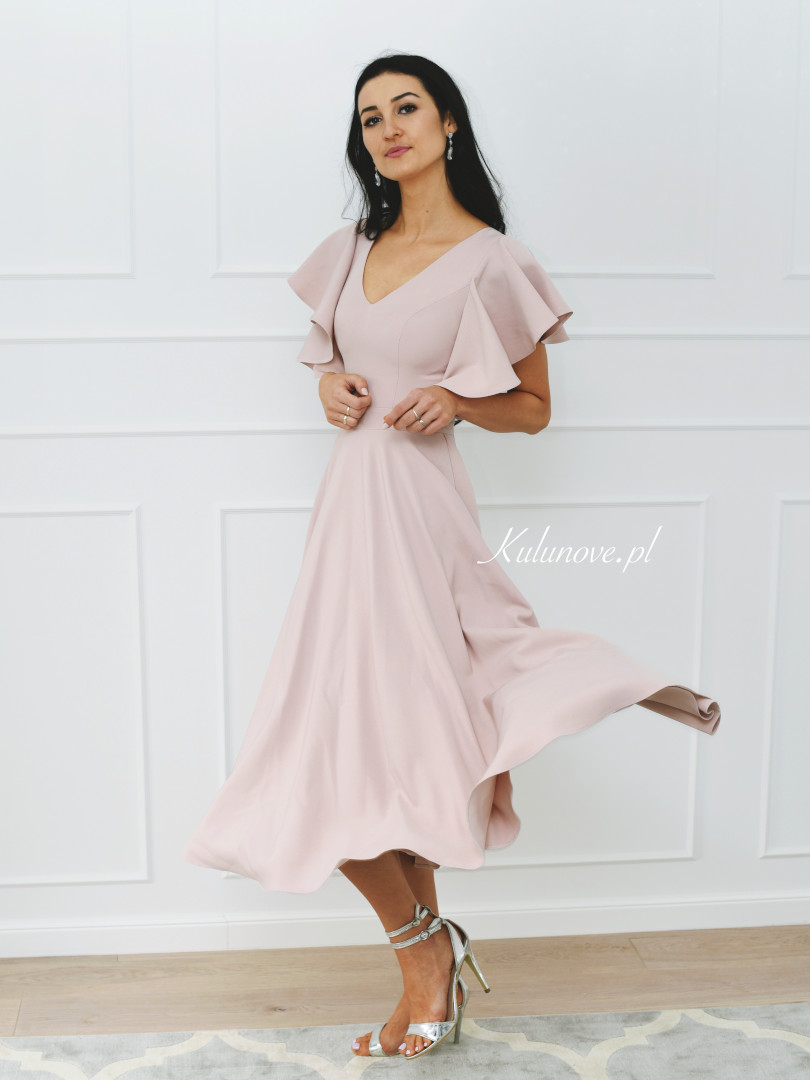Timeless midi dress in a beautiful delicate beige-pink color.