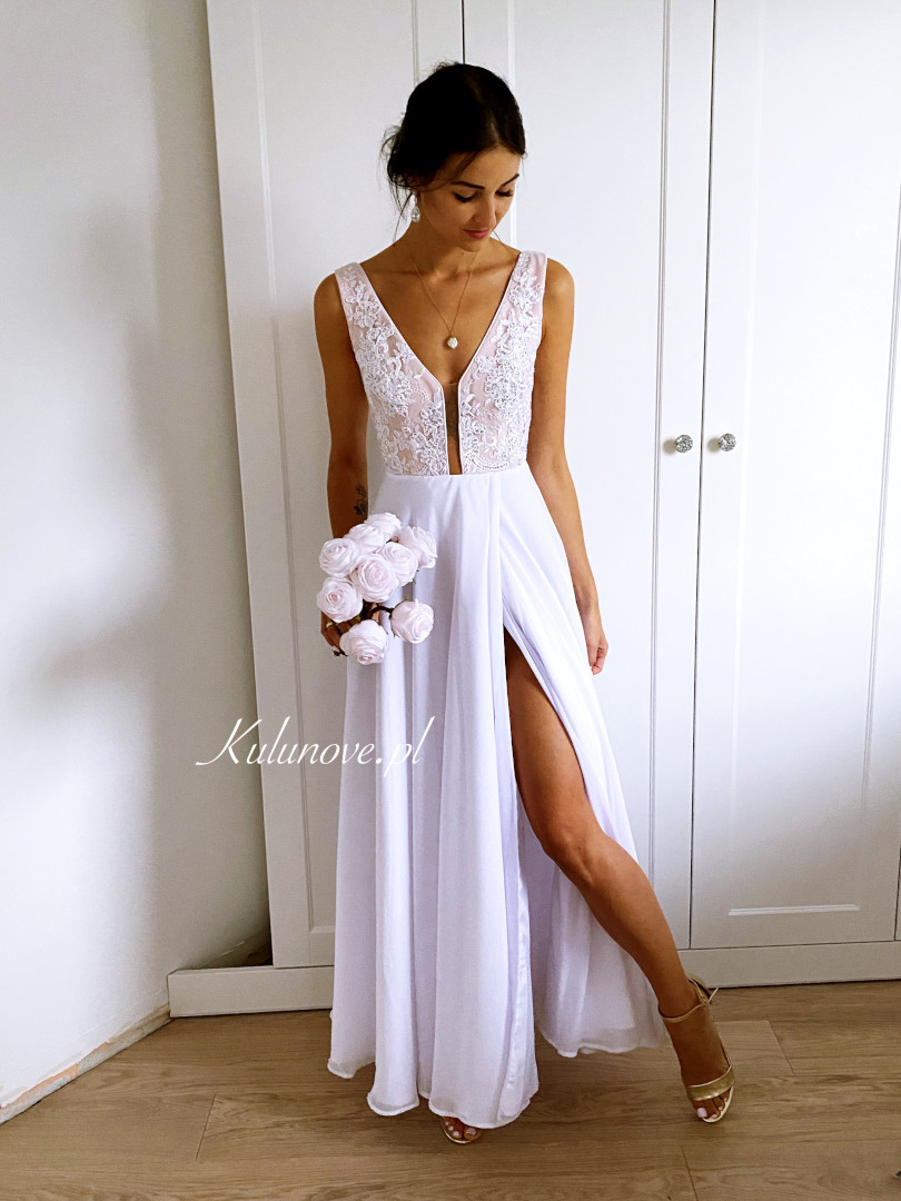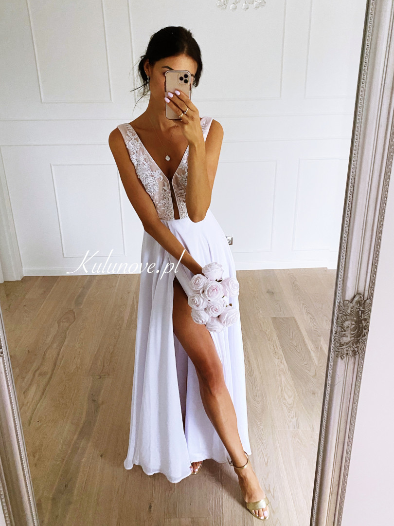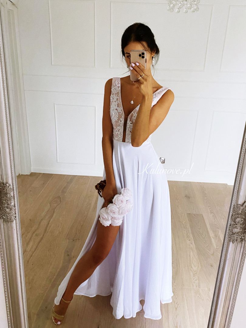 Ismena - white wedding dress with overlap pleat