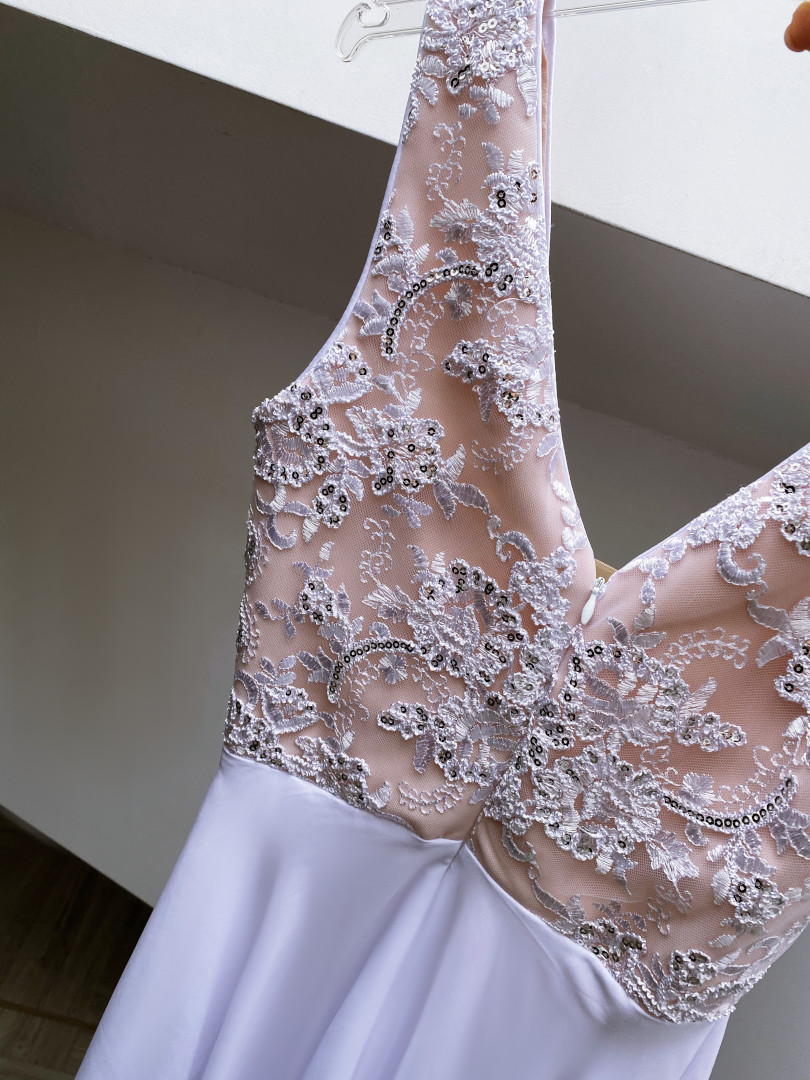 Wedding dress with an overlap zipper.