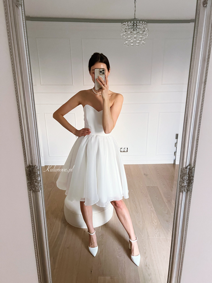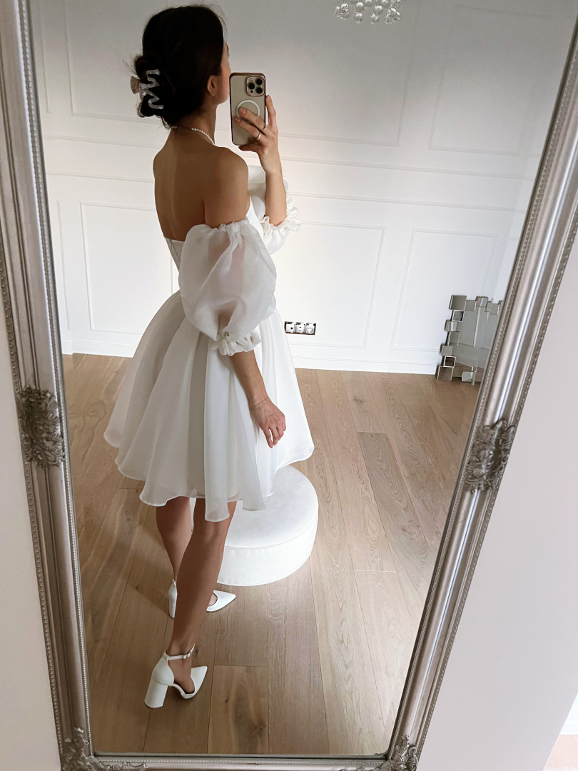 The puffed sleeves are not sewn to the dress, so we can modify it.