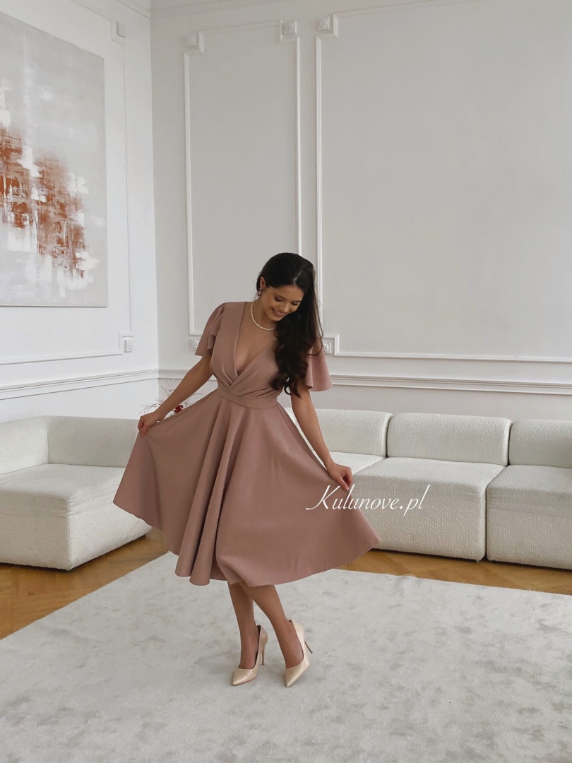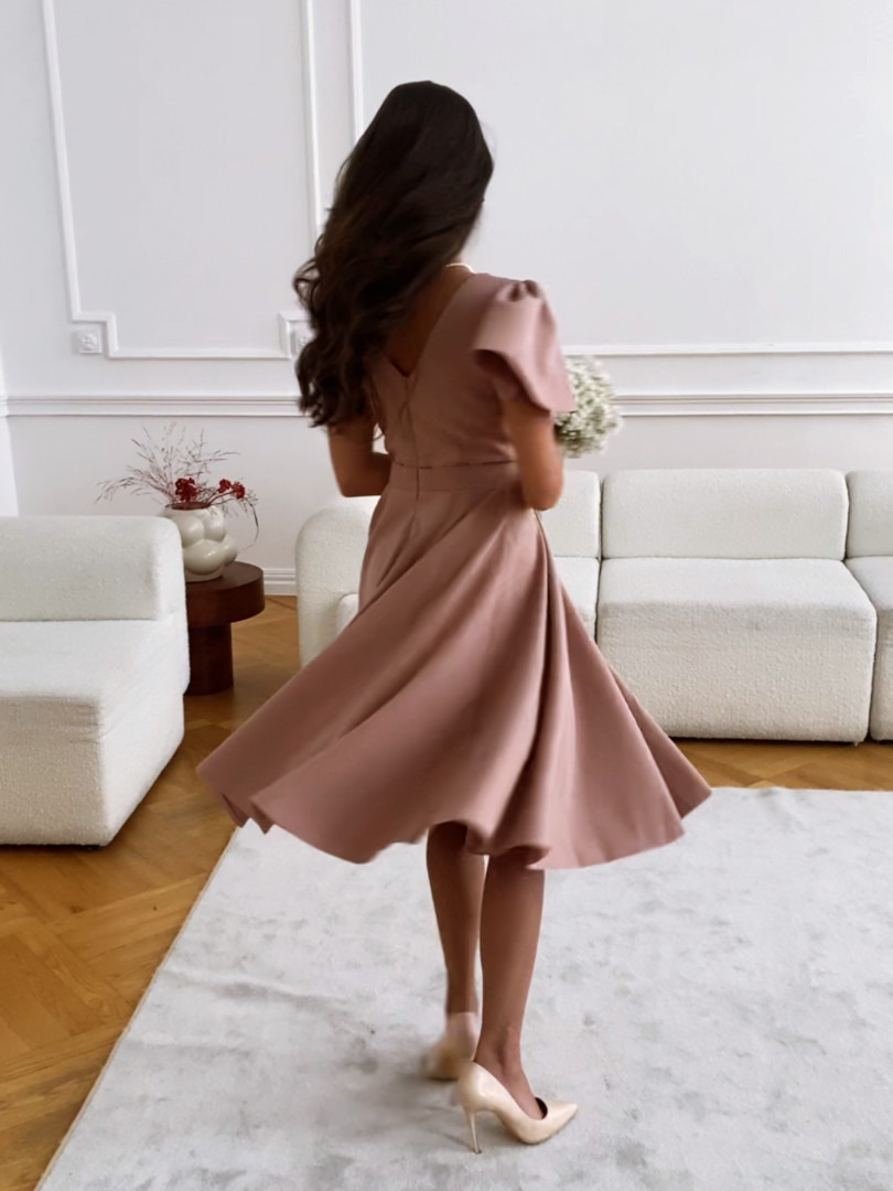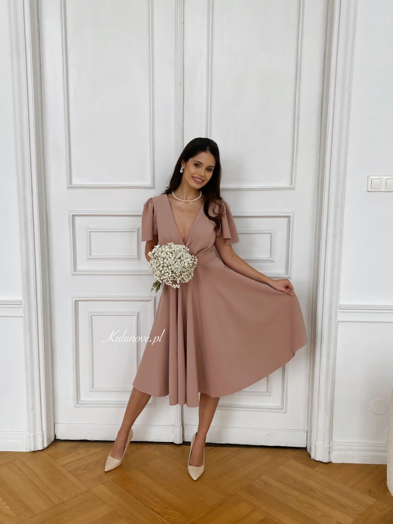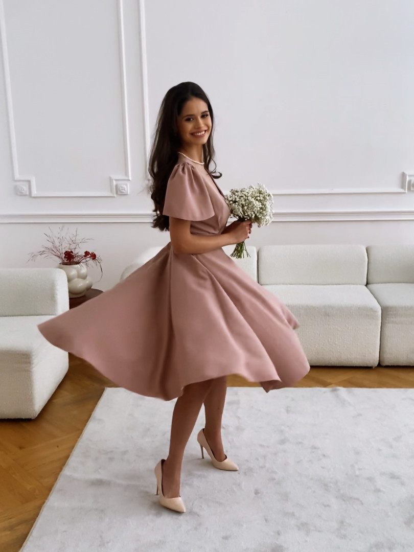 Jennifer - a knee-length dress with covered shoulders in dirty pink