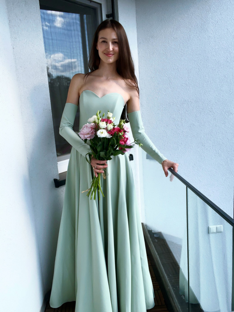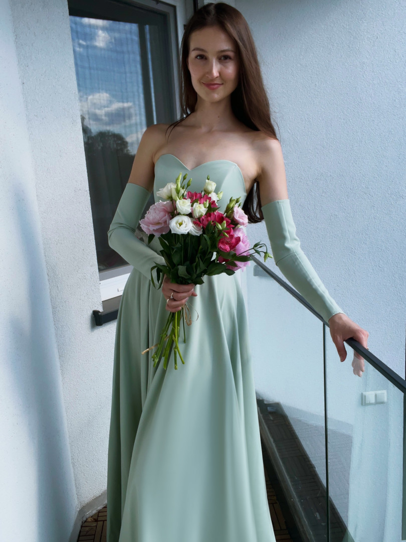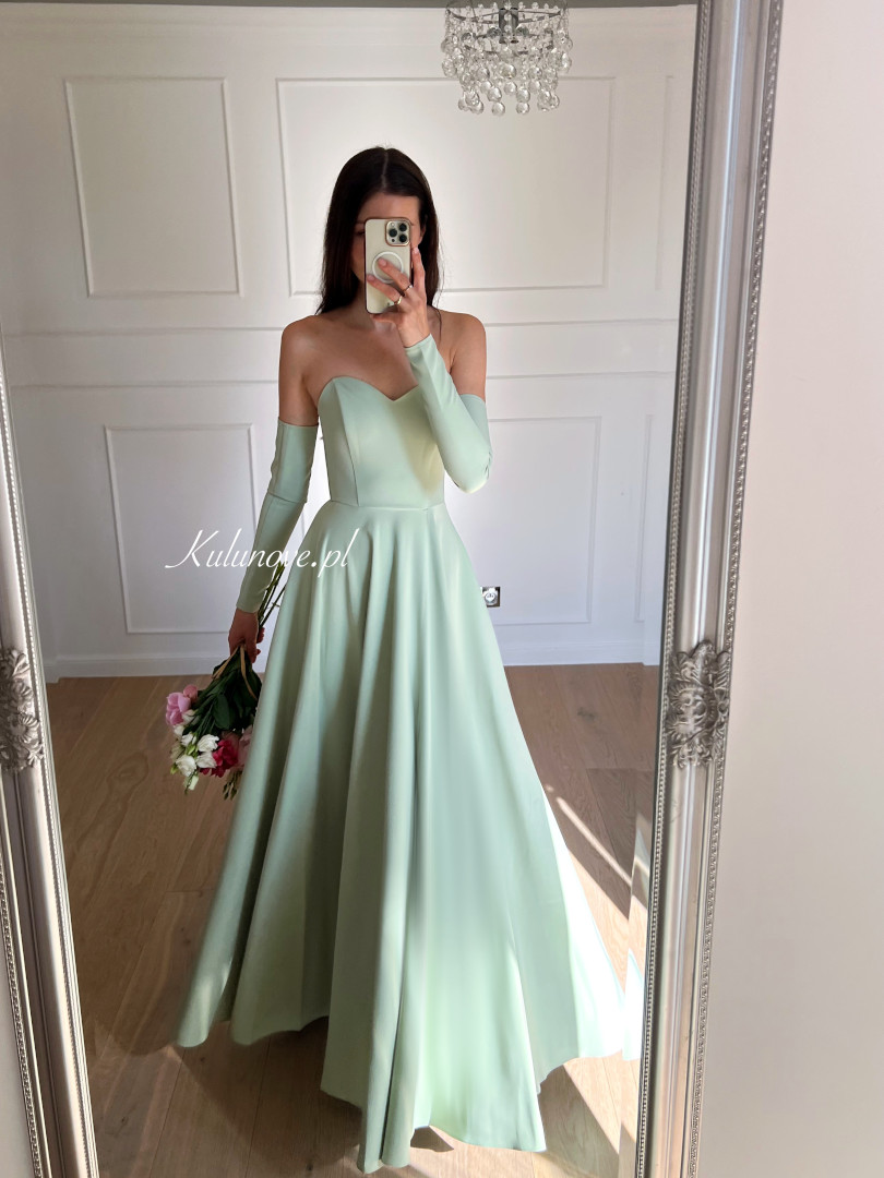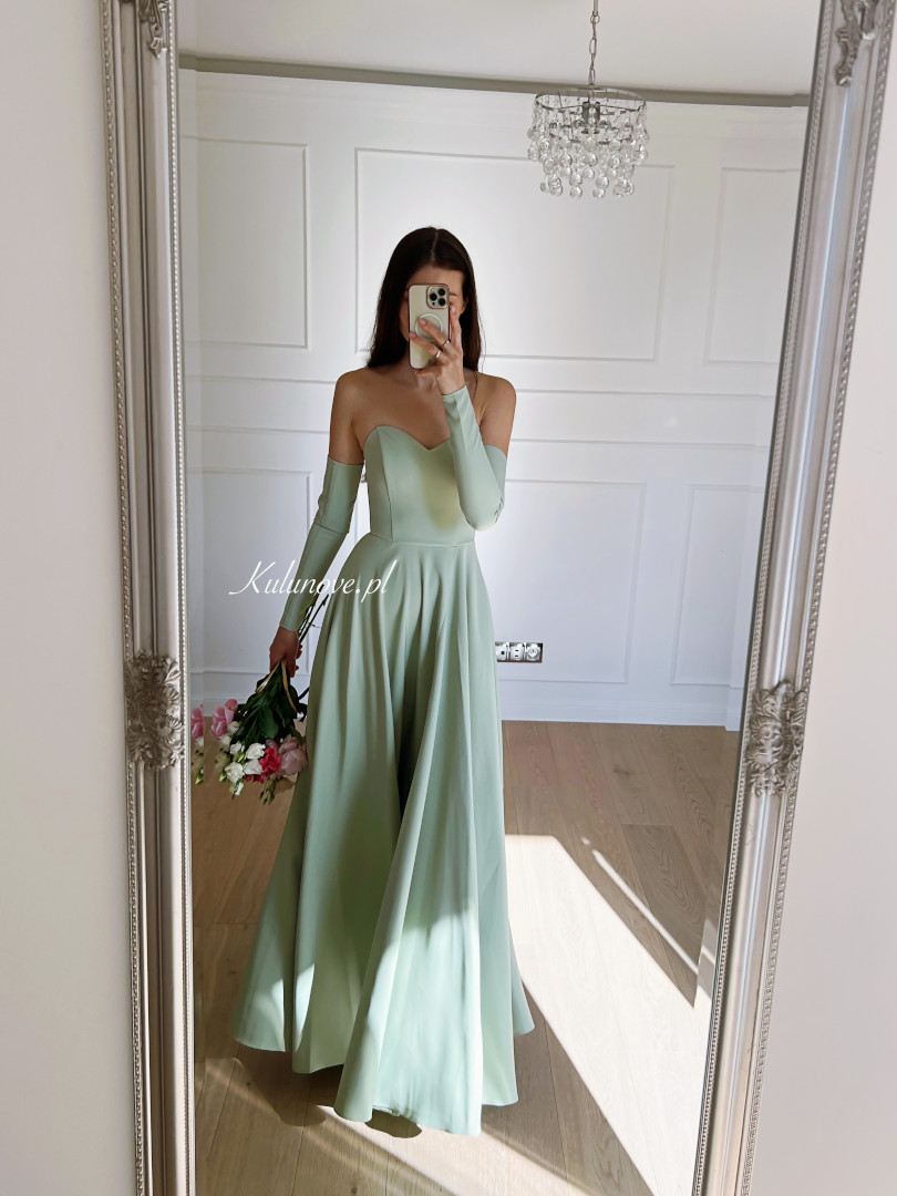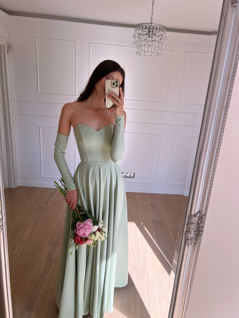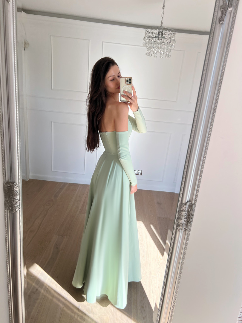 Minimalist, elegant long gown, perfect for bridesmaids or weddings.