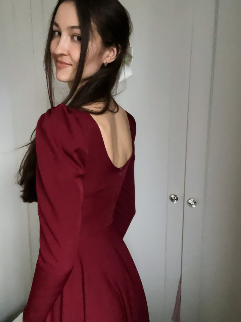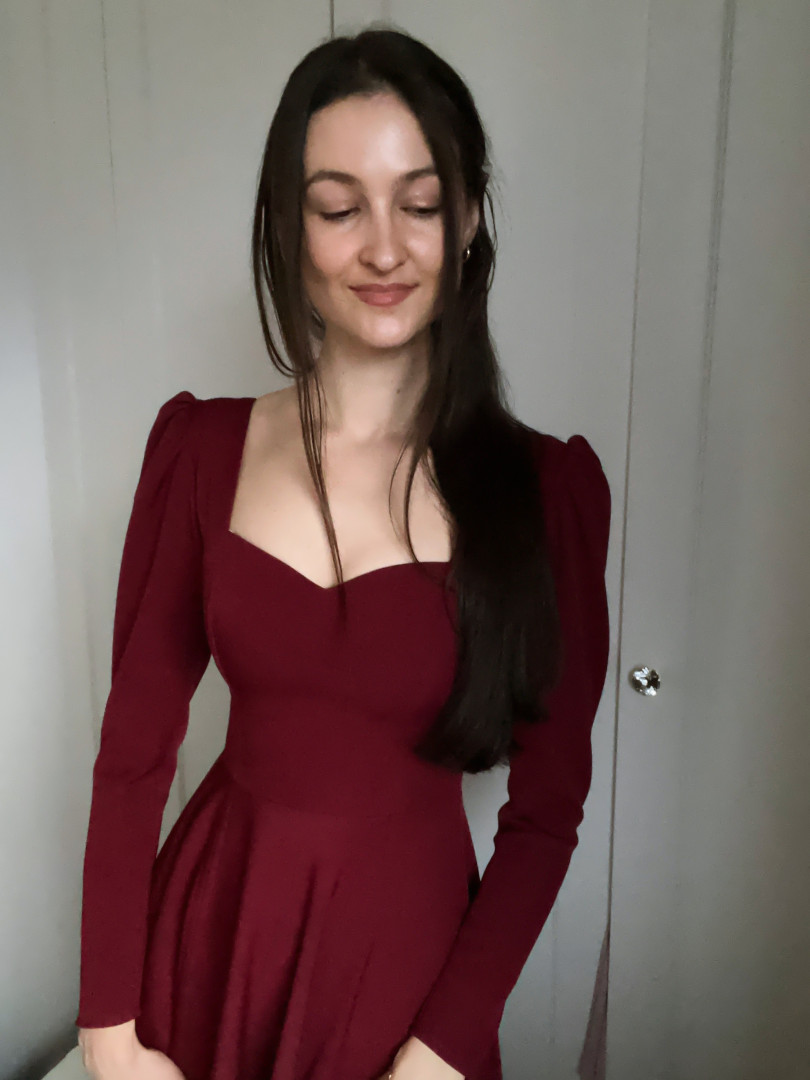 Beautifully emphasizes the bust, you can wear a bra with it.