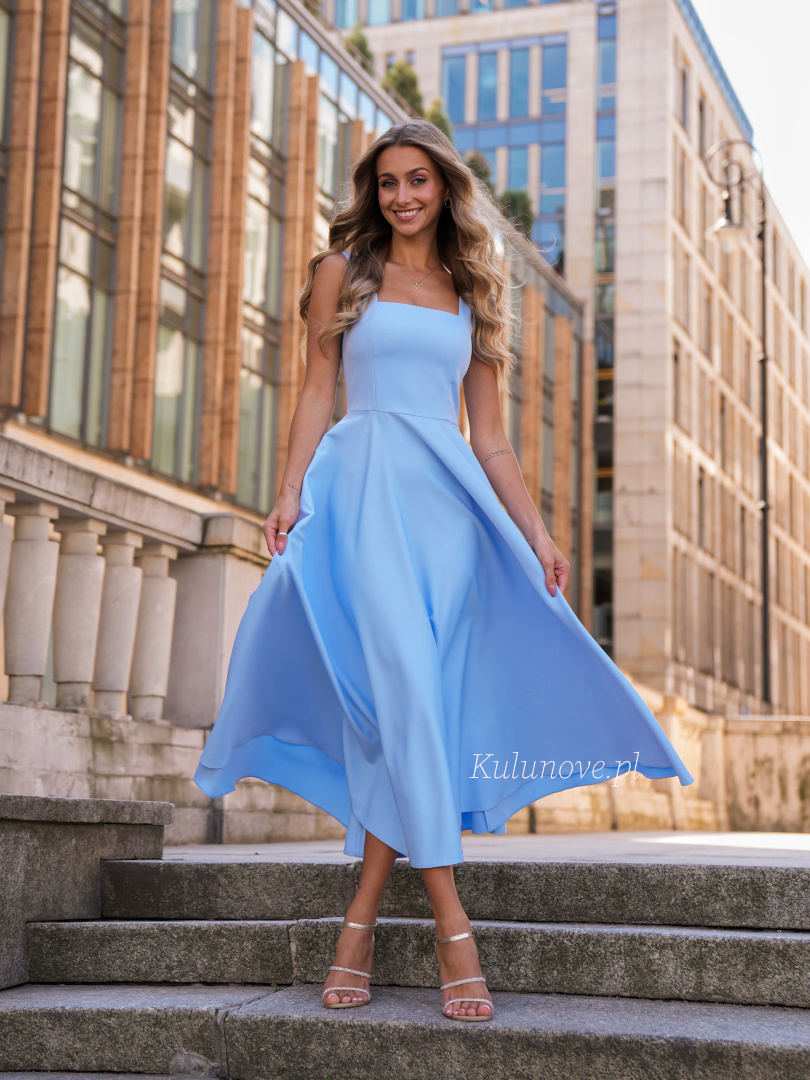 Karlie midi - blue midi dress with karo neckline and wide straps.