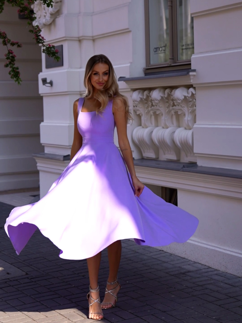 Fitted top with wider straps and a flared bottom, which swirls beautifully when moving, giving lightness and grace.