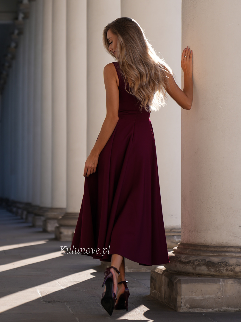 Extremely elegant proposal in deep burgundy color for special occasions.