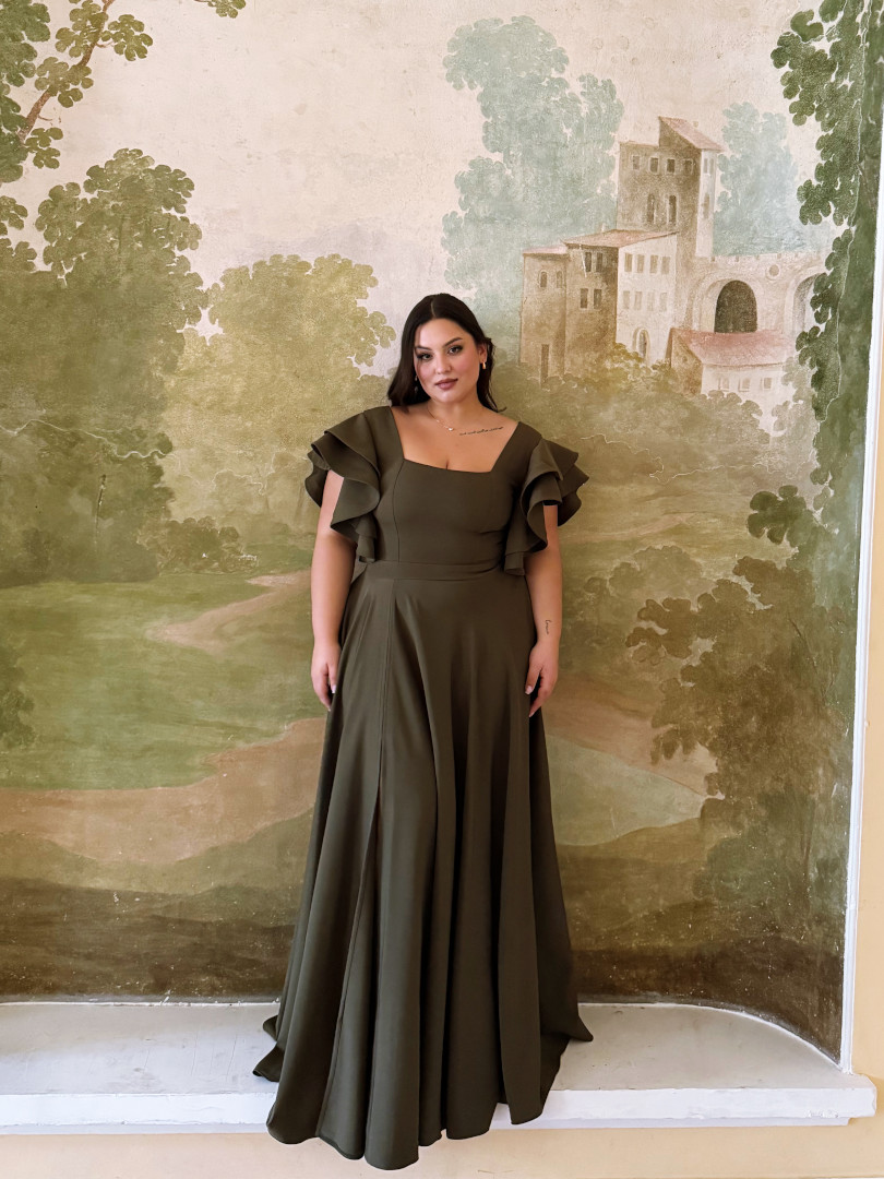 It is distinguished by butterfly sleeves that float at the shoulders.